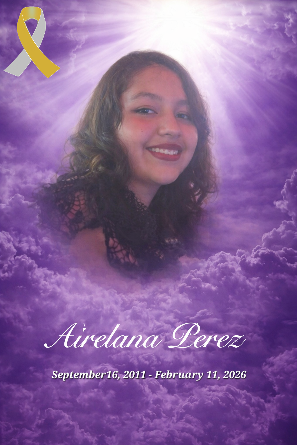 Airelanna Nicole Perez, 14, of Meridian, Mississippi, passed away on February 11, 2026, after bravely fighting cancer. Born on September 16, 2011, Airelanna brought light, love, and laughter into the lives of everyone who knew her. She was a caring soul who could light up a room the moment she walked in, with a vibrant spirit and a heart full of love. Airelanna adored anything purple, had a passion for art, and loved dressing up to express her unique personality. She dreamed of becoming an FBI profiler one day, showing her curiosity, intelligence, and determination to make a difference in the world. She found joy in life’s simple pleasures — especially her morning routine of bacon, eggs, and coffee. One of her most cherished memories was celebrating her 14th birthday, when she rode in a limo for the first time and enjoyed a special trip to the salon. It was a day filled with happiness, laughter, and feeling truly celebrated. Airelanna is survived by her loving grandmother, Melba Howington; her grandfather, Joel Arias; her sister, Isabelle Perez; her cousin, Kaitlyn Immelt; and numerous aunts and uncles who loved her dearly. She was preceded in death by her grandfather, Terry Howington; her mother, Teri Ashley Perez; and numerous aunts and uncles. Though her time on earth was far too short, Airelanna’s light will continue to shine in the hearts of those who loved her. She will be deeply missed and forever remembered. We are raising funds to help cover Airelanna’s final expenses and to support her grandmother and sister as they navigate this heartbreaking loss. Any support you can offer will help Airelanna’s family honor her memory and care for her loved ones during this difficult time. Your kindness and generosity mean so much to us. Thank you for keeping Airelanna and her family in your thoughts and prayers.