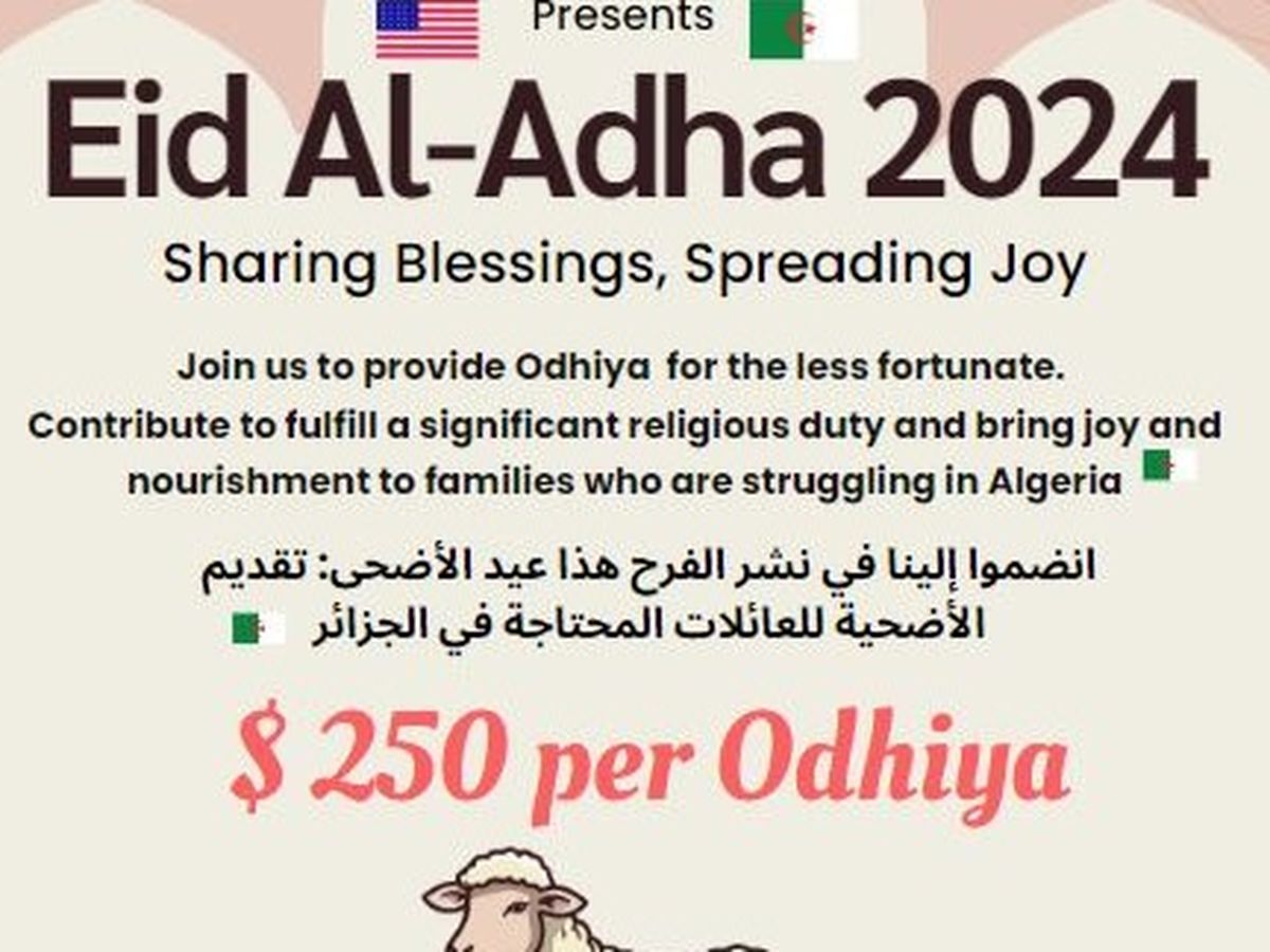 This Eid al-Adha, we have the opportunity to bring joy and hope to families in need in Algeria. By contributing to our campaign, you can help us buy odhiya (sacrificial animals) that will be shared among multiple families, ensuring that everyone can celebrate this special occasion with a hearty meal.