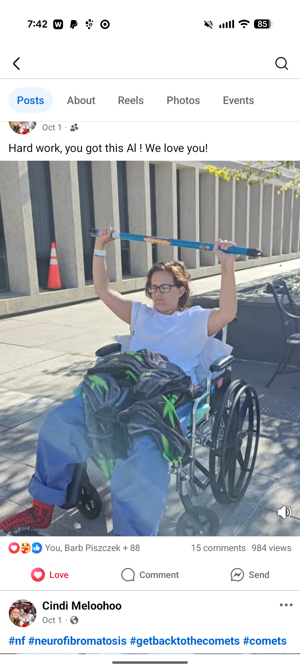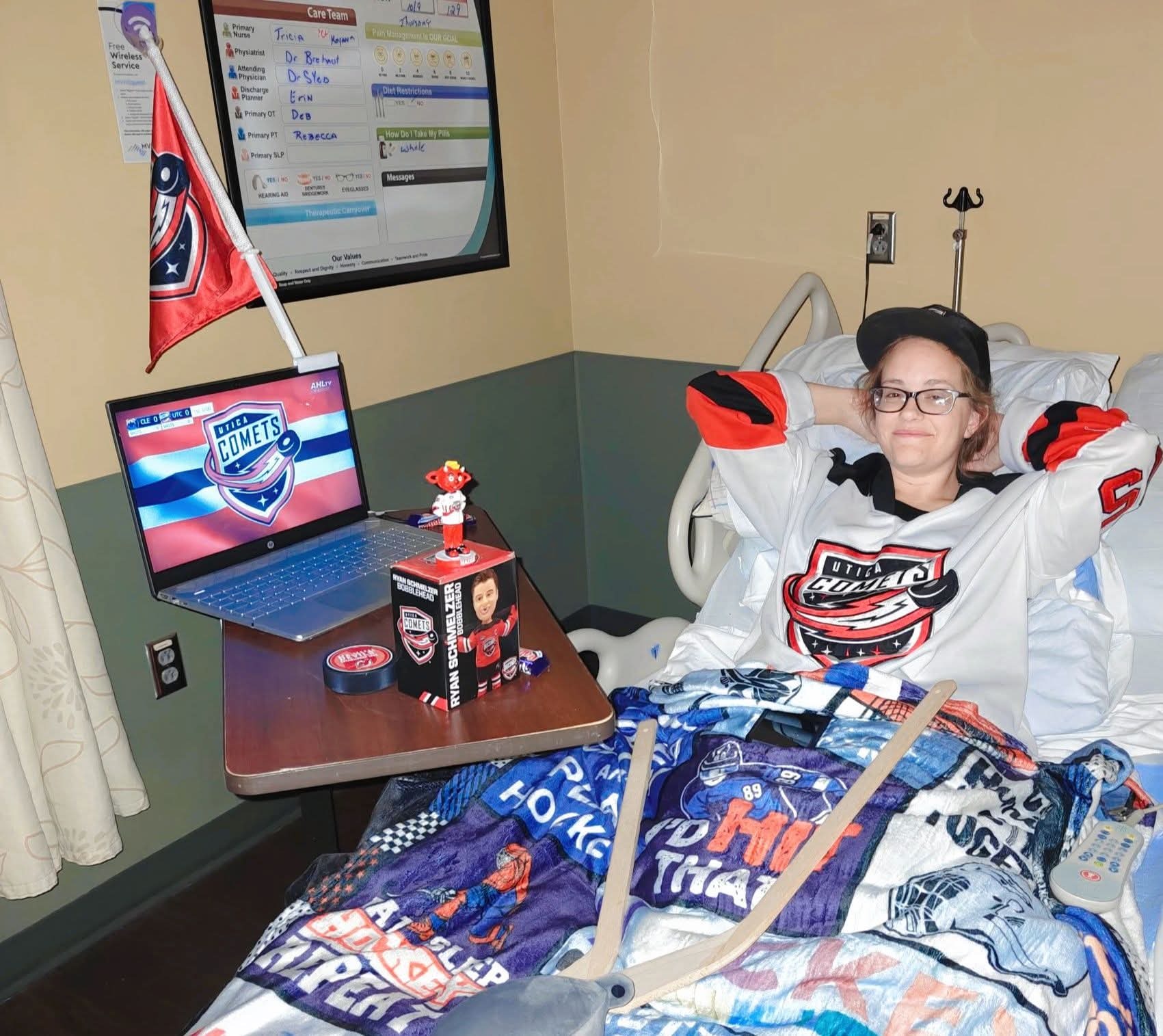Allison had the surgery with the hope that she would be in the hospital only a night or 2 and then a quick recovery but the tumors were more involved with the spine than they thought and they had to cut into the dera of her spine in order to remove the tumors. This was much more invasive and serious than anyone expected. Allison ended up in ICU for 4 days followed by the special care unit and then a couple of weeks at an intensive rehab. Since the surgery she has been very weak and had to learn to walk again depending on a wheelchair to get around. She is in constant pain and has lost some use of her left arm. The nerve pain and paralysis has been torturous and terrifying. Allison does not know what her future will be. She does know that her recovery will be challenging and long. Al has always been a hard worker and was working full-time as a personal care aide when all of this happened. Since she's lost her ability to work her expenses have piled up and the process for disability is painfully slow. She has hit financial rock bottom and needs help. Allison is always the first person to donate to a cause and would do anything for anyone to help. I'm starting this go fund me to now help her. To help her catch up on her bills, buy food and buy gas cards so that she can get rides to therapy, appointments and recreational activities like hockey. Hockey has been her life line through this journey and has been an integral part of her recovery. Her hockey team and hockey family have already made such a difference in her mental health. I'm so grateful for everyone who has been there for Al.