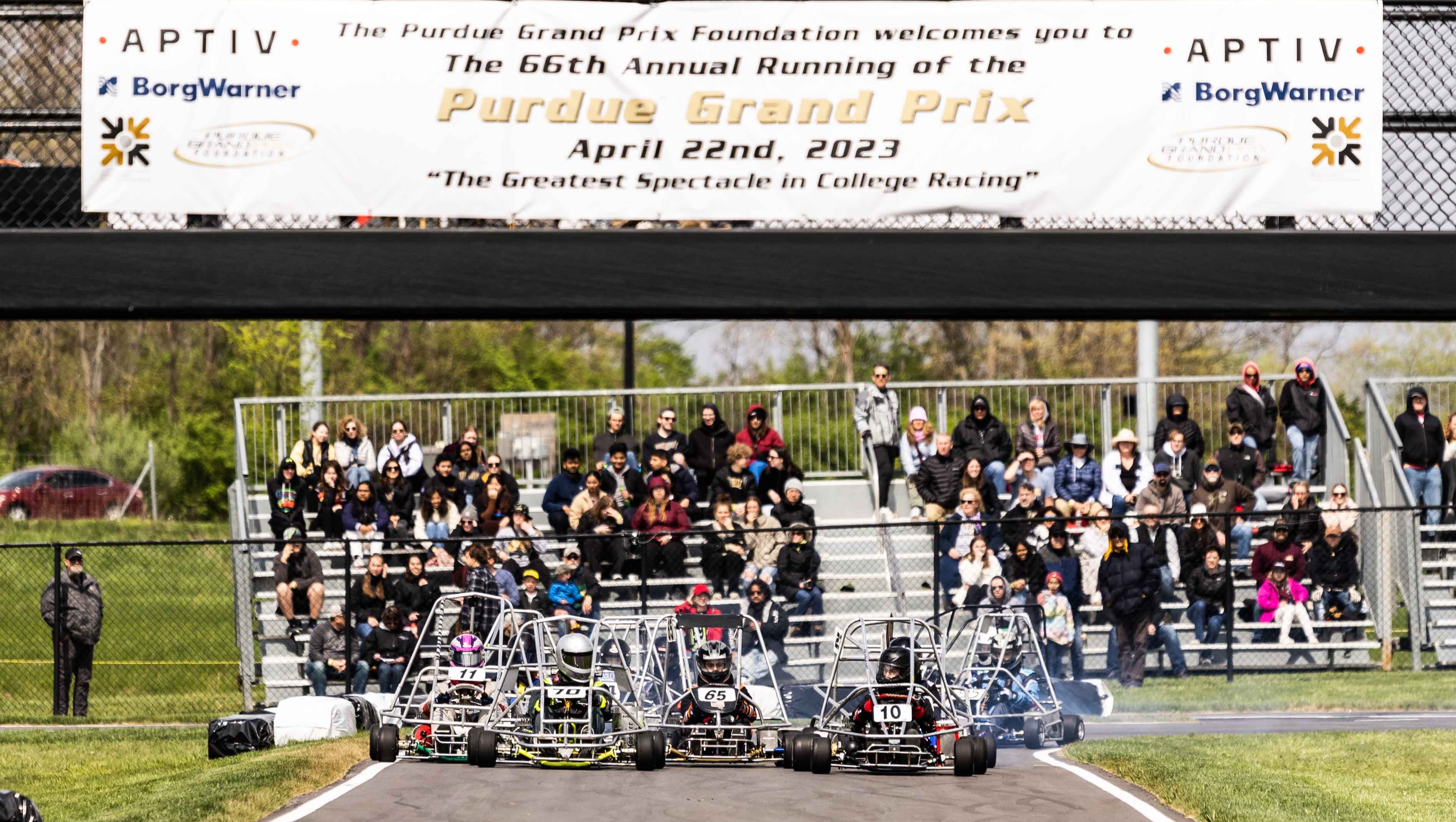 Since Purdue Grand Prix’s first race on May 17, 1958, Grand Prix has been a lasting tradition and a cornerstone of “students helping students”. Today, Purdue Grand Prix consists of 33 teams with karts that participate in a 160-lap (50-mile) race. The Grand Prix Foundation has been, is, and will be an epicenter for the community at Purdue University and fundraising to provide scholarships for students.