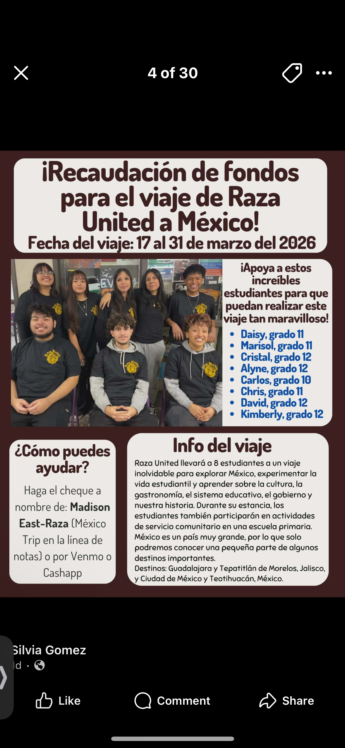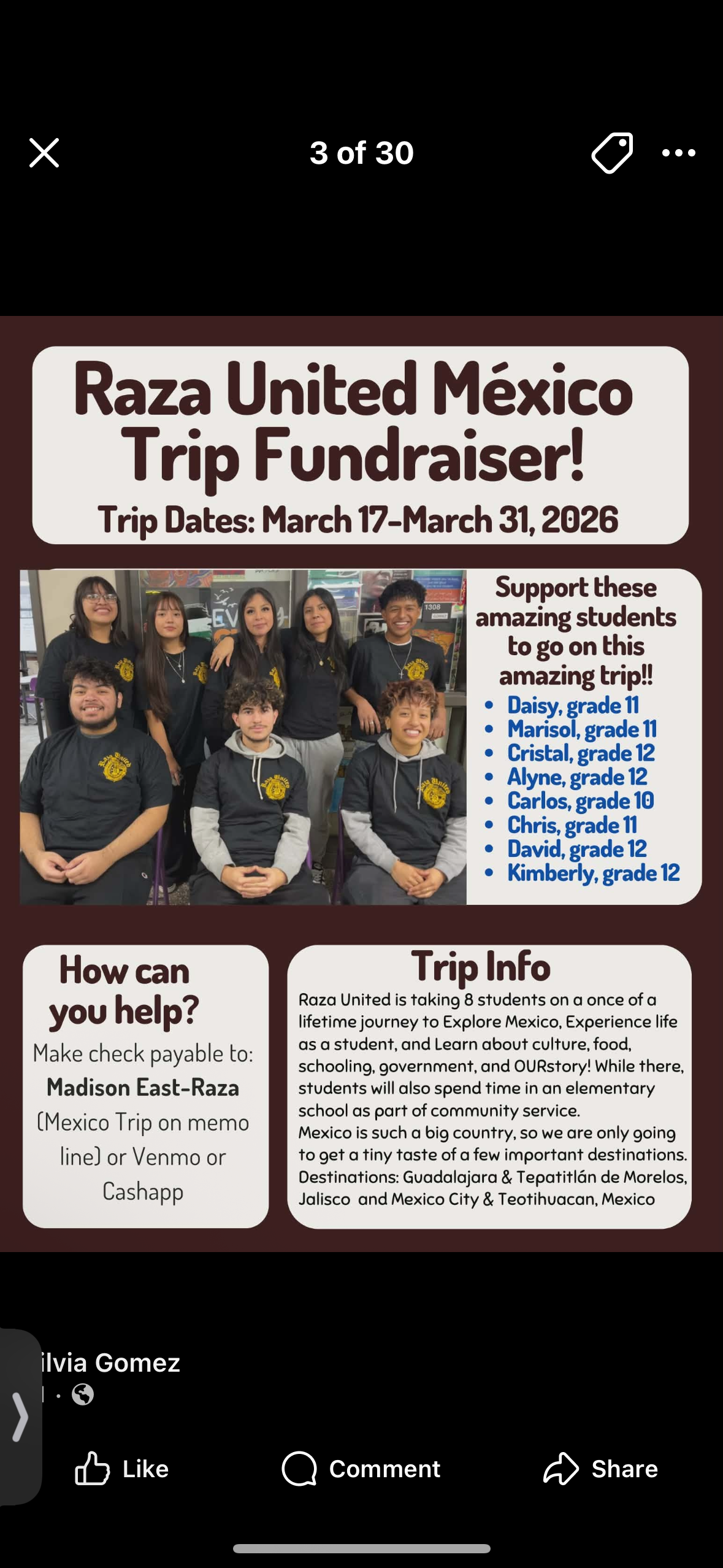 Hi! My name is Alyne Espinoza Mora, and this March, I will be going to Mexico for the very first time. My parents are from Mexico, and they always mention how beautiful the culture is. Unfortunately, they’re unable to travel and visit at the moment. Thanks to Raza United, the Latine student union club at East High School, I’m able to see the world my parents grew up in and get enriched in my culture and history. I want to be able to have a deeper connection with my roots. However, in order for me to have this life-changing experience, I need help to raise money to pay for the expenses. Any amount is greatly appreciated. Thank you so much in advance.