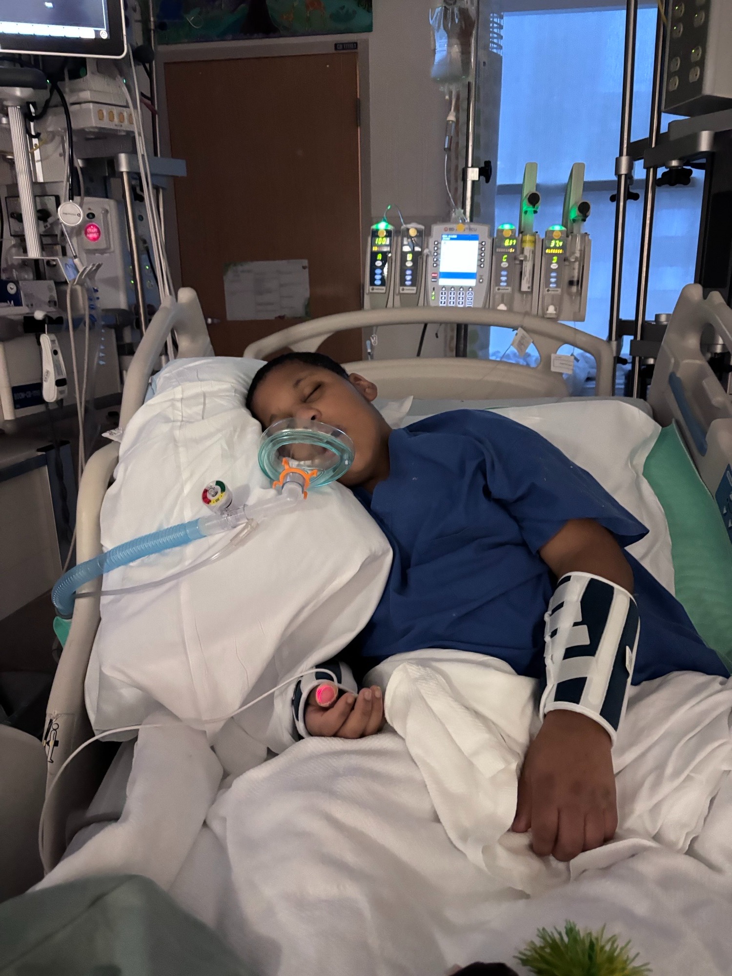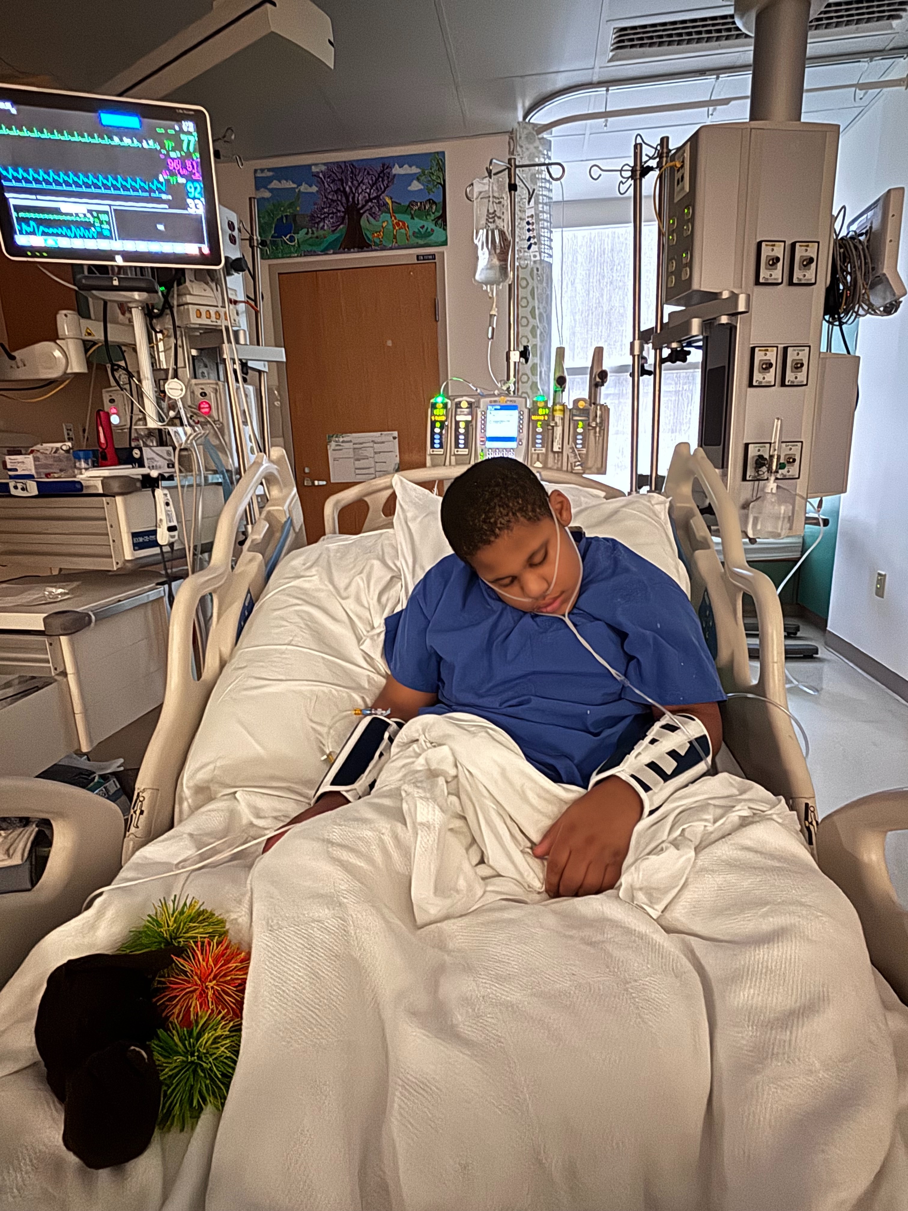 Wednesday came, and the team of doctors decided to place an NG tube to give him his medication and nutrients that way and then slowly start to wean him off some of the medications like Dexmedetomidine and Ativan. Well, that only went okay. It was very hard on him; every time he woke up, he would get agitated and try and rip everything out.
