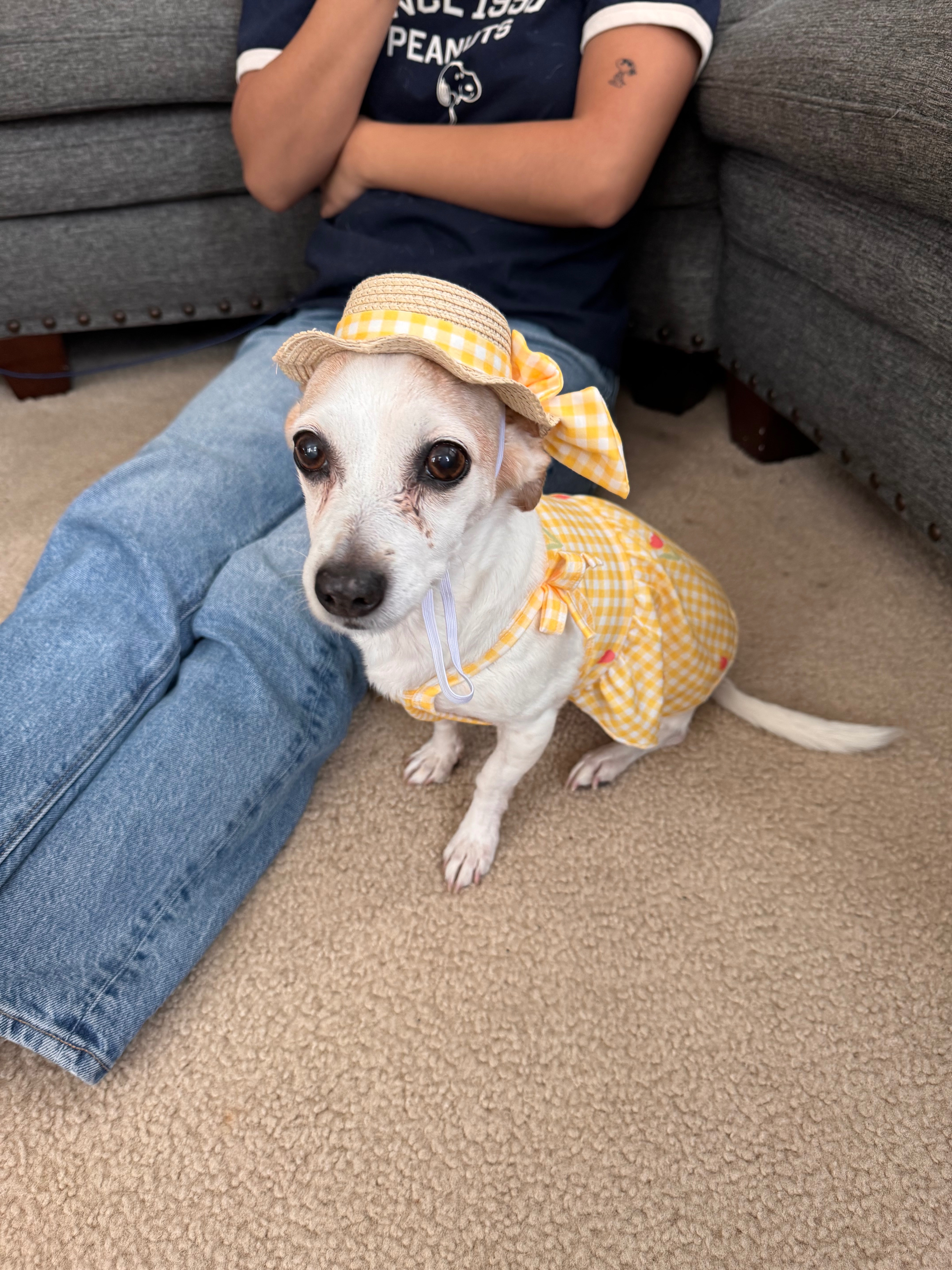 Our sweet girl, Amy, may be small, but she is truly mighty. She’s always been a little protector: alert, loyal, and brave. She adores snacks and treats and somehow always knows when it’s time for one. Most of all, she’s a big cuddler who lives for naps, affection, and being close to her people.