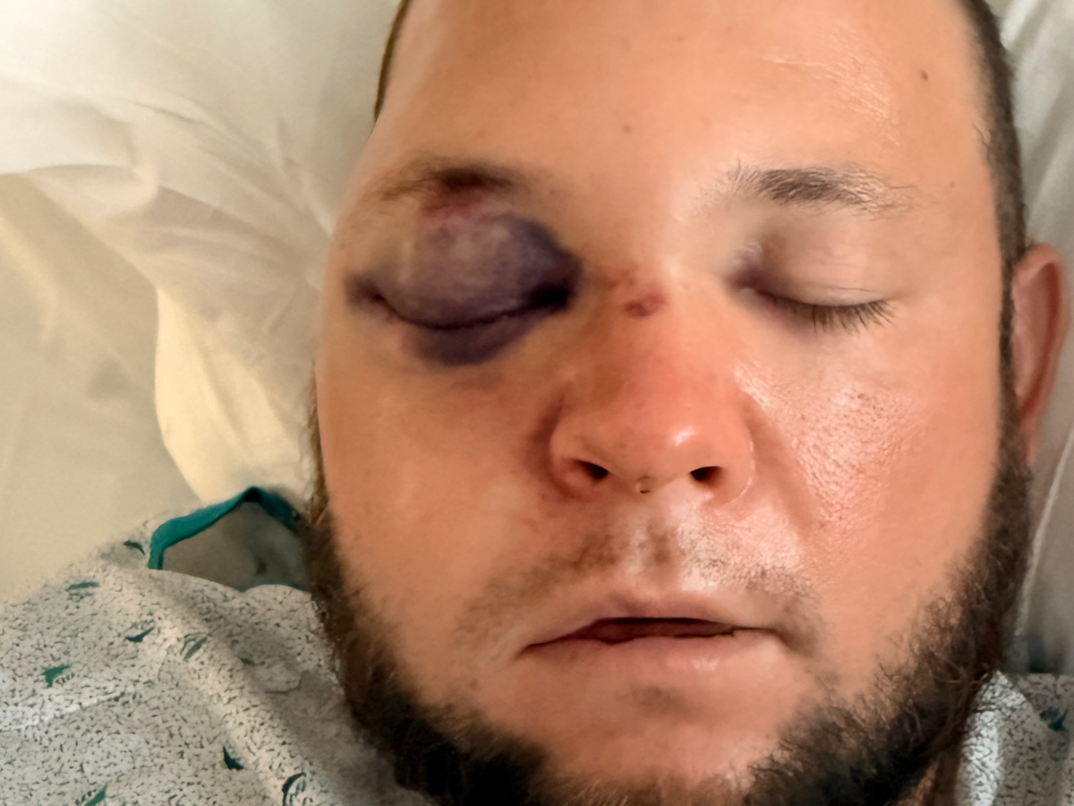 Right now, his right eye is swollen completely shut, leaving him unable to see out of it. Once the massive swelling goes down, he’ll need to meet with a plastic surgeon to determine whether reconstructive surgery will be necessary.