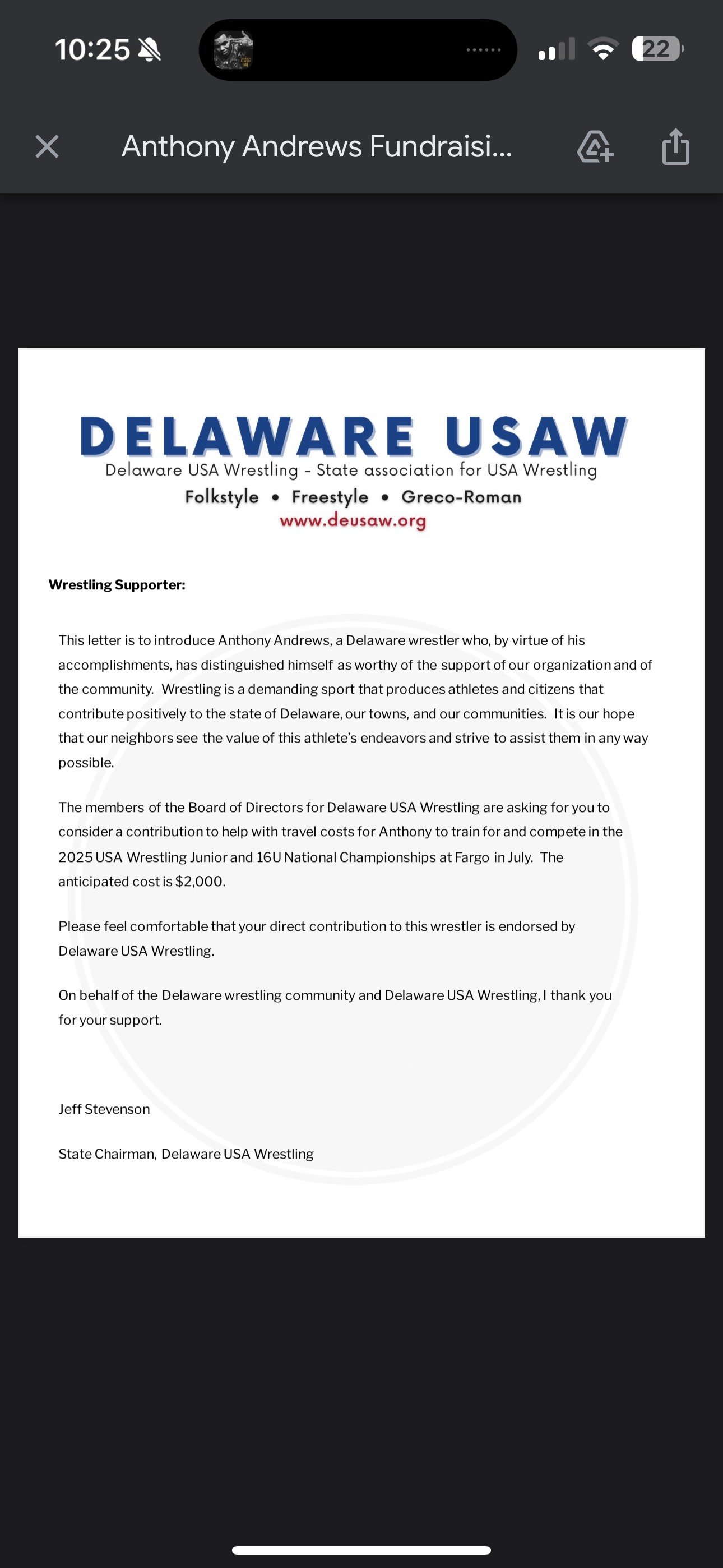 We're reaching out to rally support for Anthony Andrews, an exceptional wrestler from Sussex Tech High School, as he gears up to represent Team Delaware at the 2025 USA Wrestling Junior and 16U National Championships in Fargo, North Dakota, from July 12–19. Anthony is incredibly excited and can't wait to represent Delaware on a national stage.
