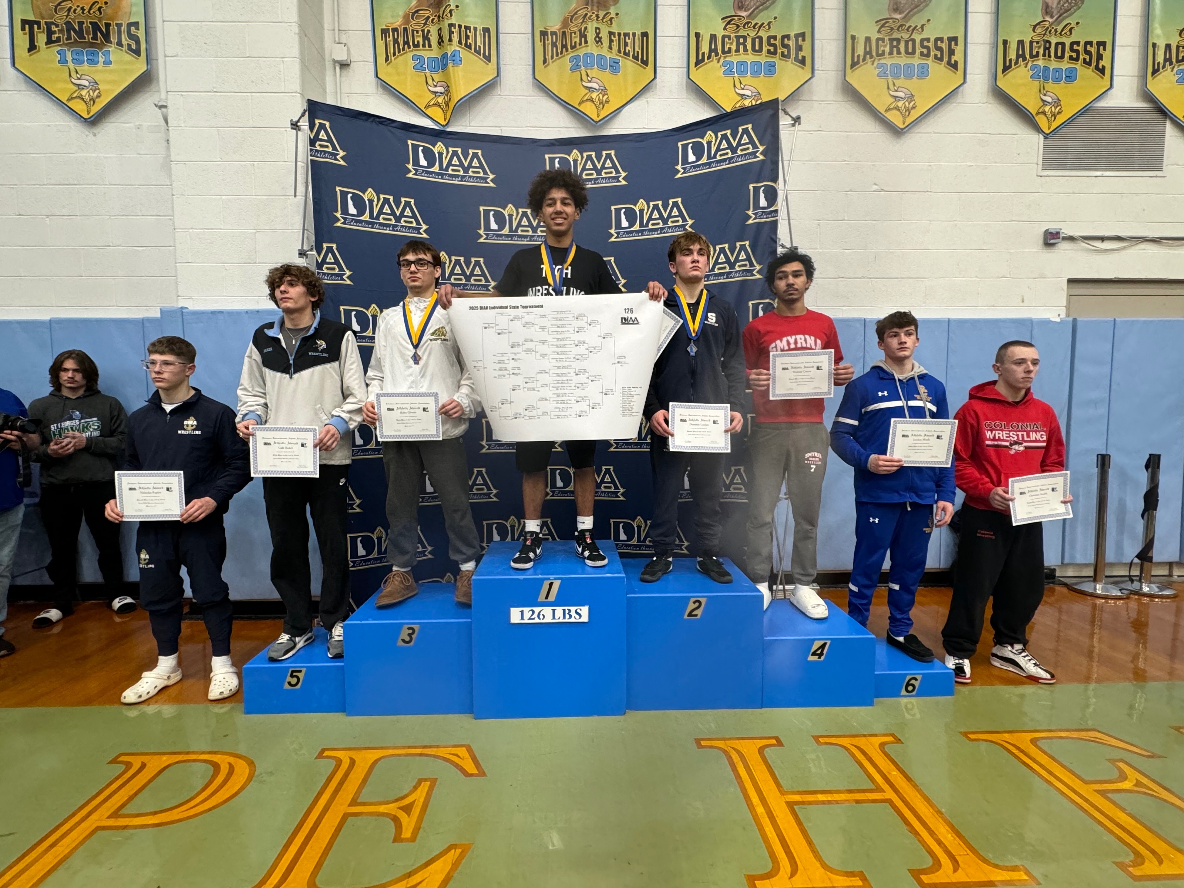 He clinched the 126lb 2025 Delaware State Champion spot, was the 2025 Henlopen Conference Champion, and previously, a 2x Delaware State Placewinner, earned a finalist spot in 2024, and was also a 3x Henlopen Conference Finalist, beginning in just the 8th grade.