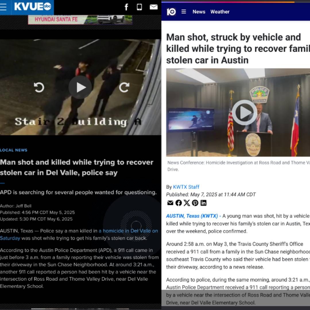 On May 3rd, 20-year-old Anthony Salas was tragically killed in Del Valle, TX while trying to recover his family’s stolen car. He was shot and run over in a heartbreaking act of violence.