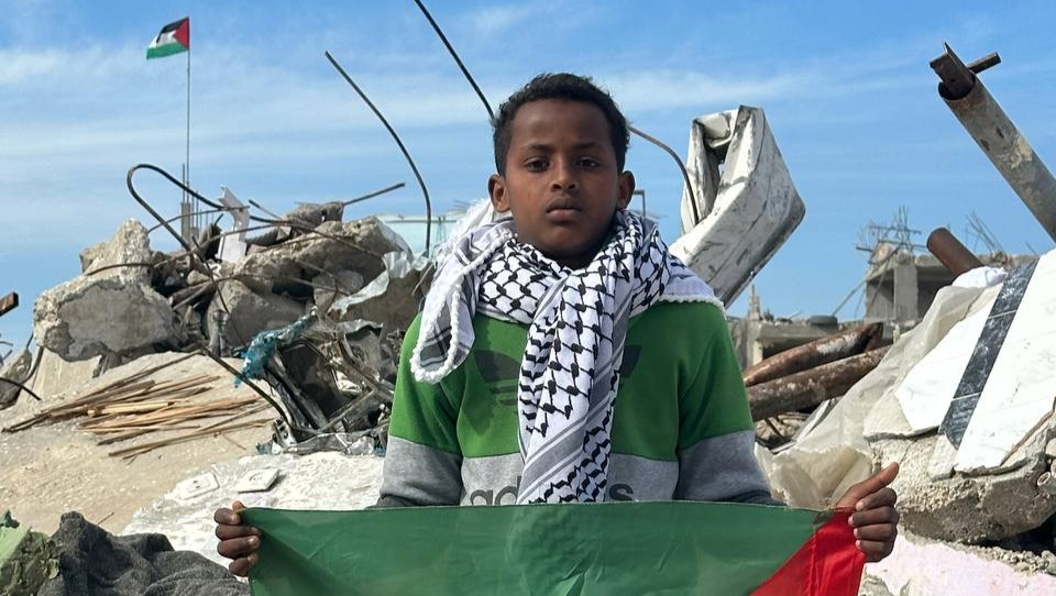 Hello world, I am a believer in all of you, Mumin Jamiean (13) and my cat Zain. I live in ravaged Gaza. We had a house to live with my father's family, my mother's family and 6 siblings, but the devastating war ended everything. They were displaced from a house to the south after a missile fell. Here, we're dying of hunger. We can't find food to satisfy our hunger, nor clean water to drink. The war has destroyed everything around us, leaving us with nothing but pain, fear, and hunger.