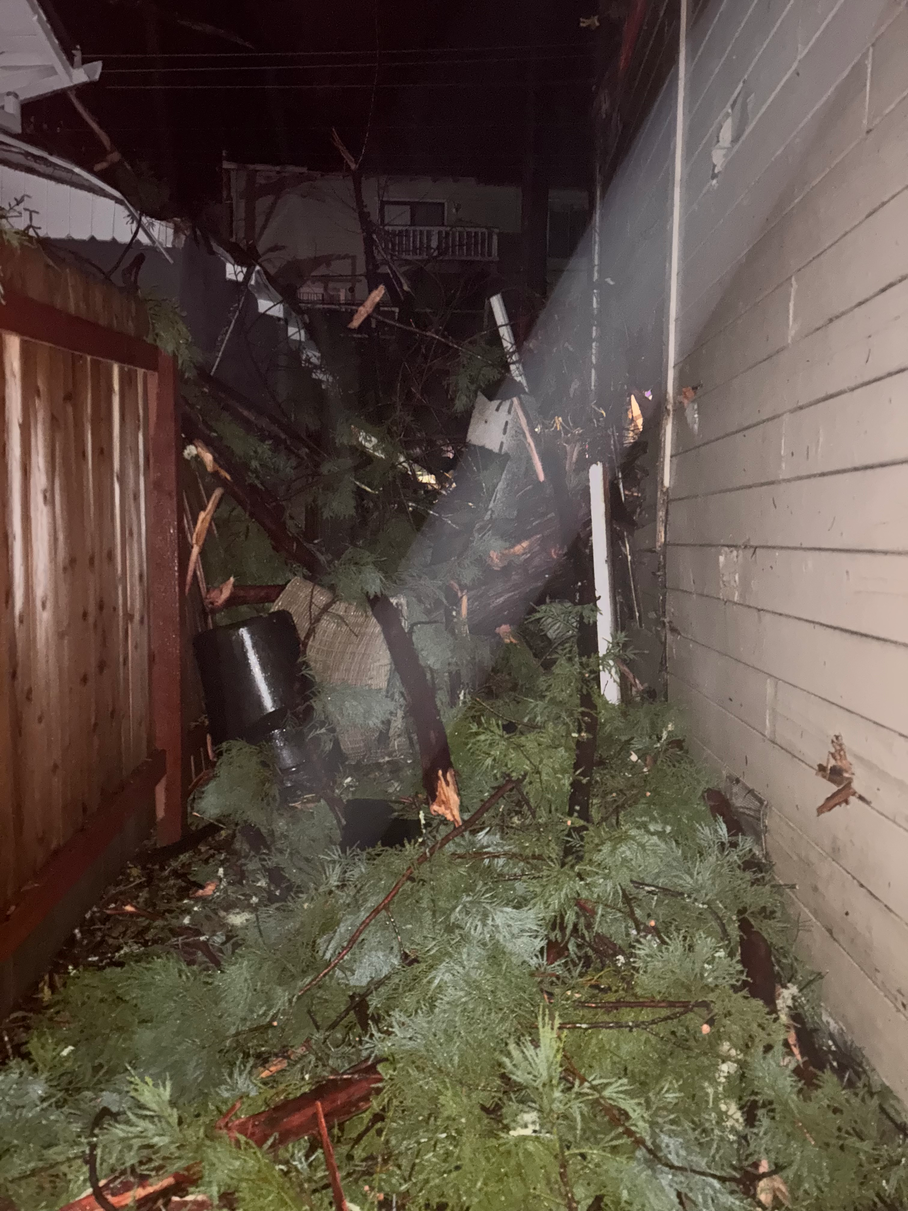 On the morning of December 24 — yes, Christmas Eve — a tree crashed through the back portion of Anya and Sean’s home. By sheer luck, they and their pets made it out safely, but their house did not.