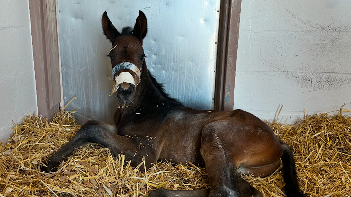 On 3/24 Morgan was admitted to New Bolton Center with a high heart rate from pain and had an emergency c-section. Sadly, Morgan passed away. Her foal was very premature and in the ICU for 16 days. He was unable to stand or eat on his own so a feeding tube had to be placed. Staff worked around the clock for many days to take care of him. He developed sepsis in his umbilicus and part of his bladder, and developed a blood clot in his feeding tube vein. In order to survive he underwent surgery to remove the infection from his bladder and umbilicus. Freeman spent 16 days in the hospital.