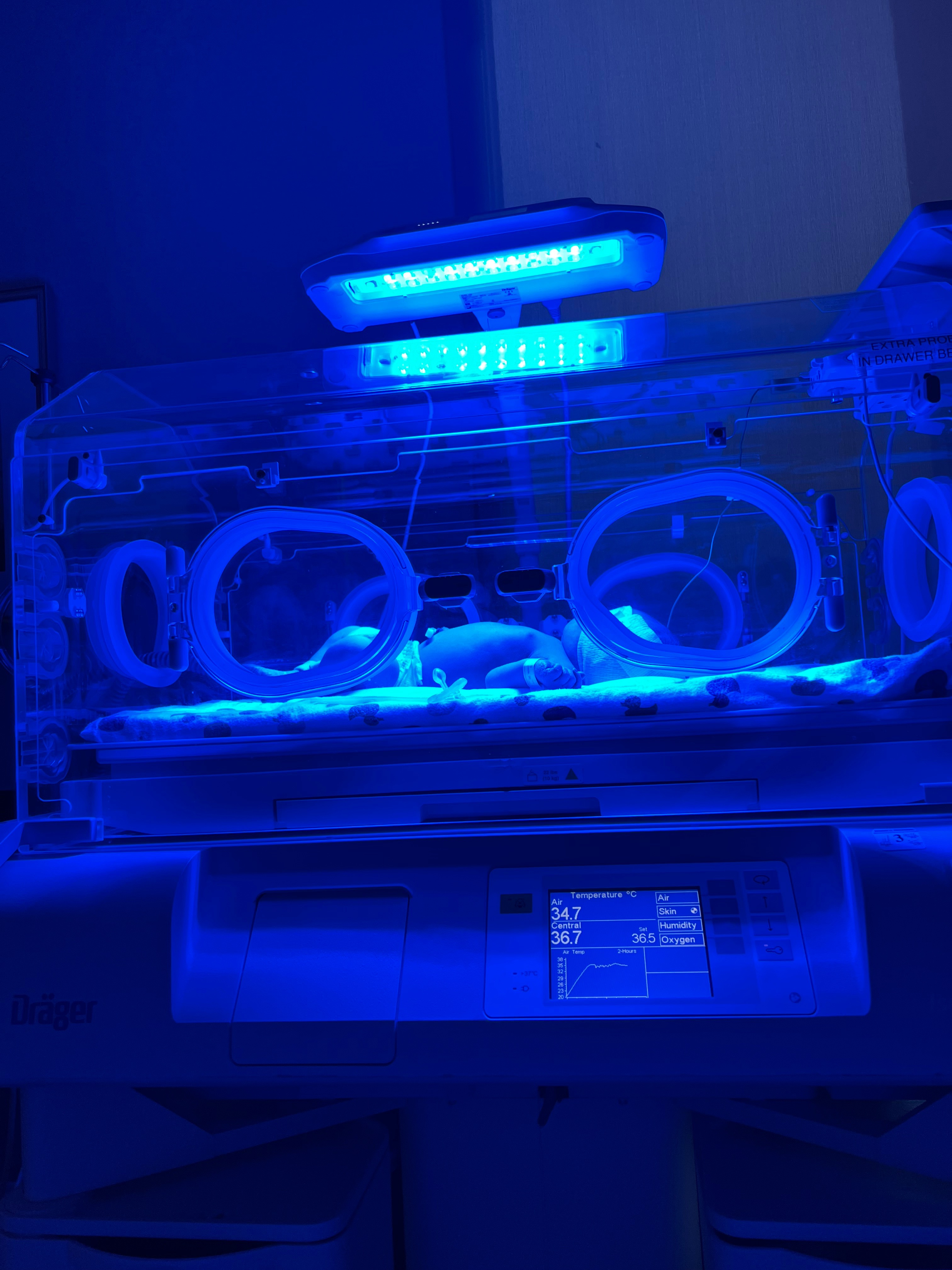 Arietta Bennet Steinbrook was born at 8:52pm on June 15th (clearly she wanted to be her daddy’s Father’s Day present). Everything has been looking good post birth but she was starting to develop some jaundice so they did some additional testing. Arietta and I have different blood types and because of that, her red blood cell count is low and her bilirubin is high. They started her on phototherapy last night and while it is helping, it does significantly change how things were looking on Monday morning when we were told we would likely both be discharged Tuesday morning.