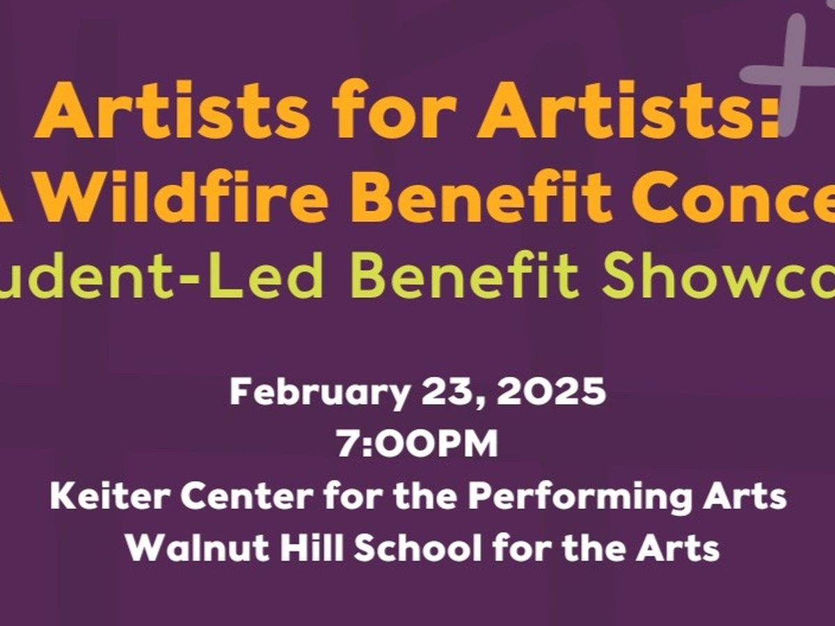Join us for Artists for Artists, a student-led benefit showcase at Walnut Hill School for the Arts, where students from all five majors—Dance, Music, Theater, Writing, Film & Media Arts (WFMA), and Visual Art—unite to raise funds for wildfire relief efforts. This event will support the Center for Cultural Innovation, an organization dedicated to aiding artists and freelancers impacted by the recent LA wildfires. Through powerful performances and creative works, we aim to offer both financial support and a strong sense of solidarity to those affected. The arts provide a unique way to express grief, hope, and resilience, and through this showcase, we use art to help rebuild lives, restore livelihoods, and offer comfort in the face of devastating loss.