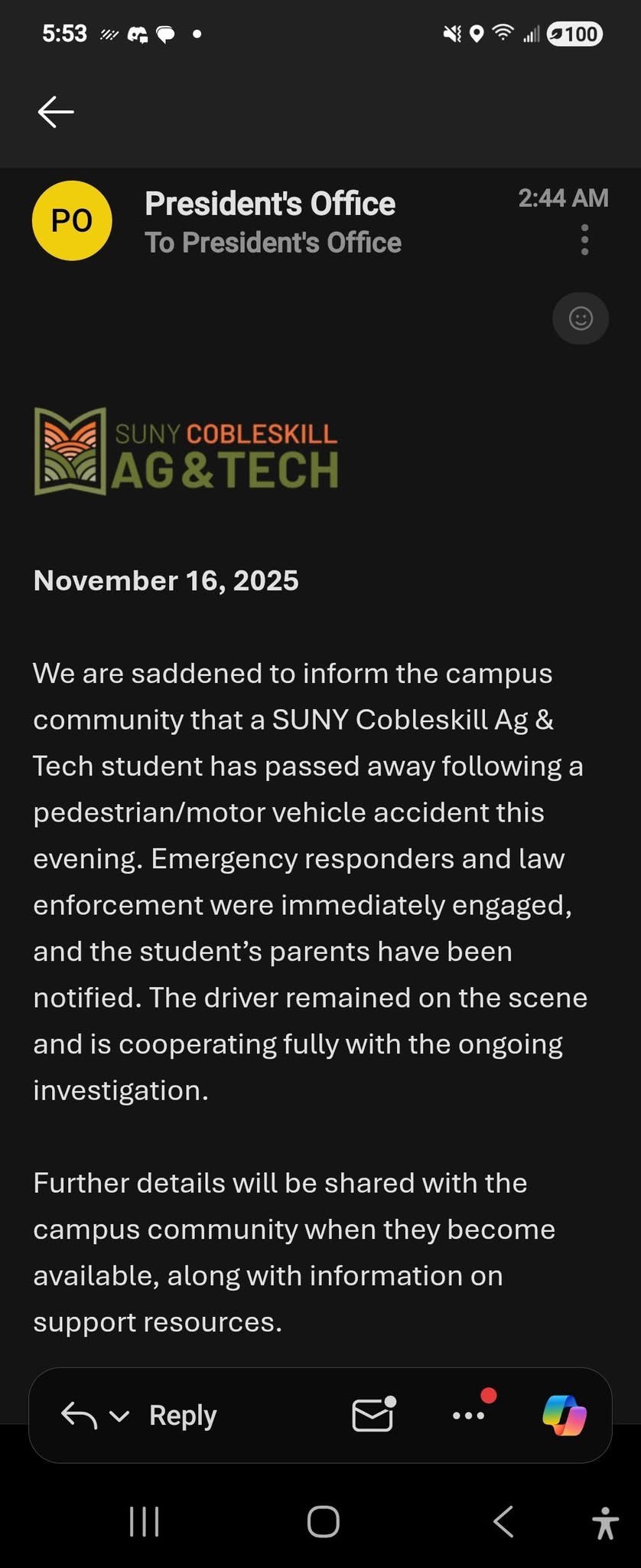 Ashlee Reeves was a beautiful 19-year-old attending college at SUNY Cobleskill A & G. She was walking to get dinner when she was tragically struck by a man driving an SUV. In an instant, Ashlee’s life was taken, leaving her family and all who loved her heartbroken. Her parents are now facing the unimaginable pain of losing their daughter, and the entire family is devastated by this sudden loss.
