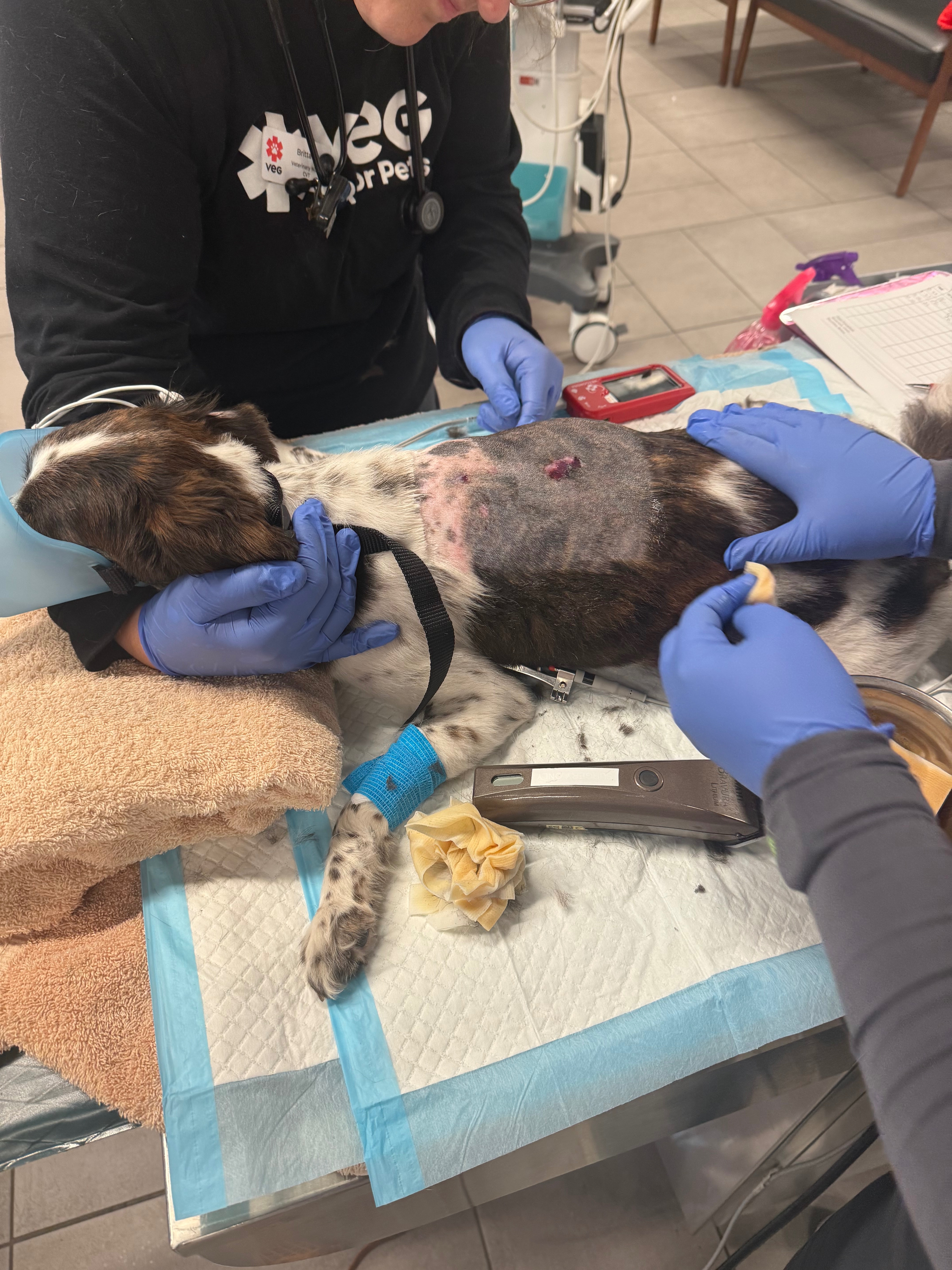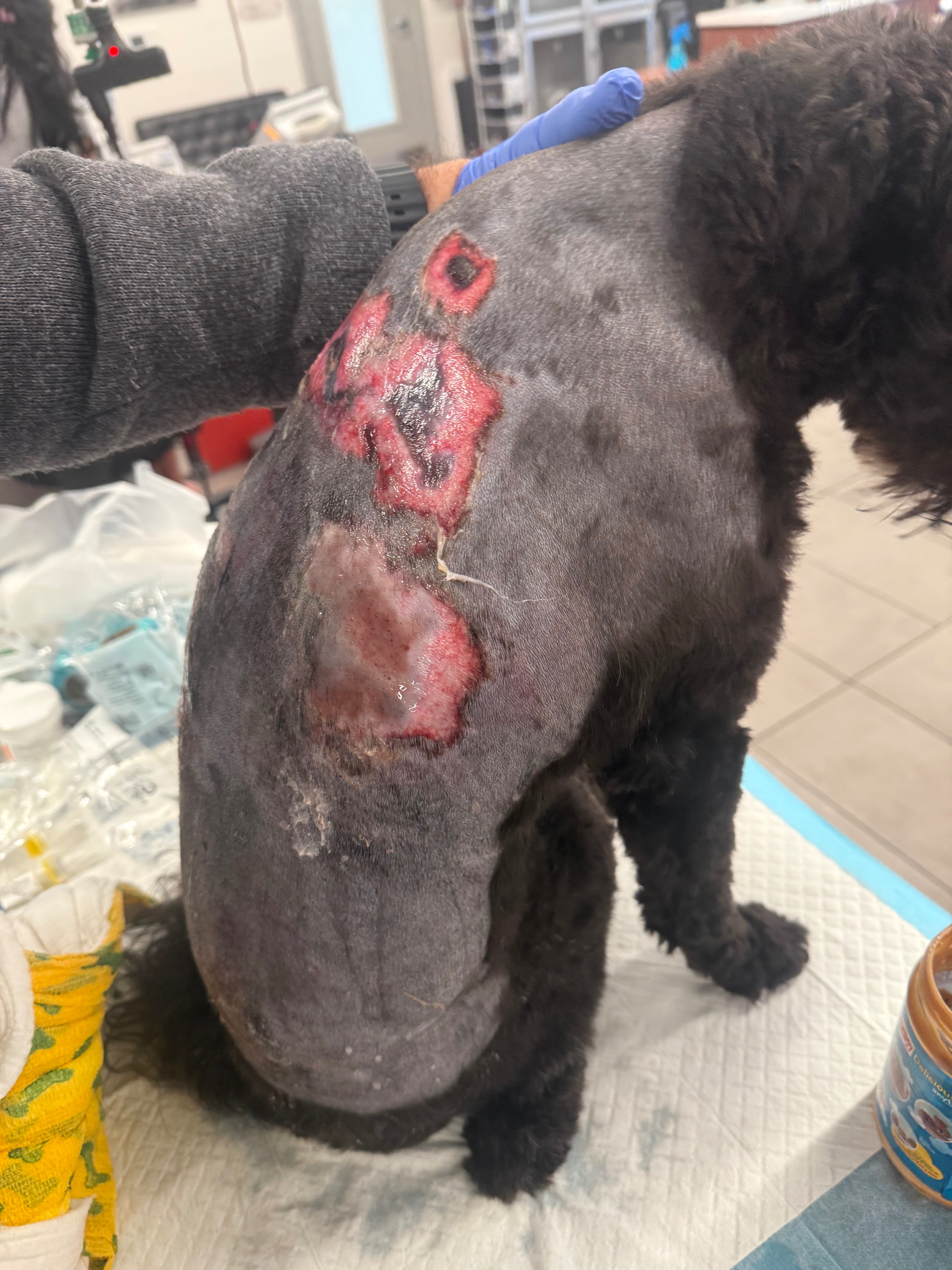 The vets had to sedate them, shave the affected areas, and begin immediate treatment. It’s been an emotional and painful time for us all, and now we are facing mounting medical expenses as we start their healing journey.