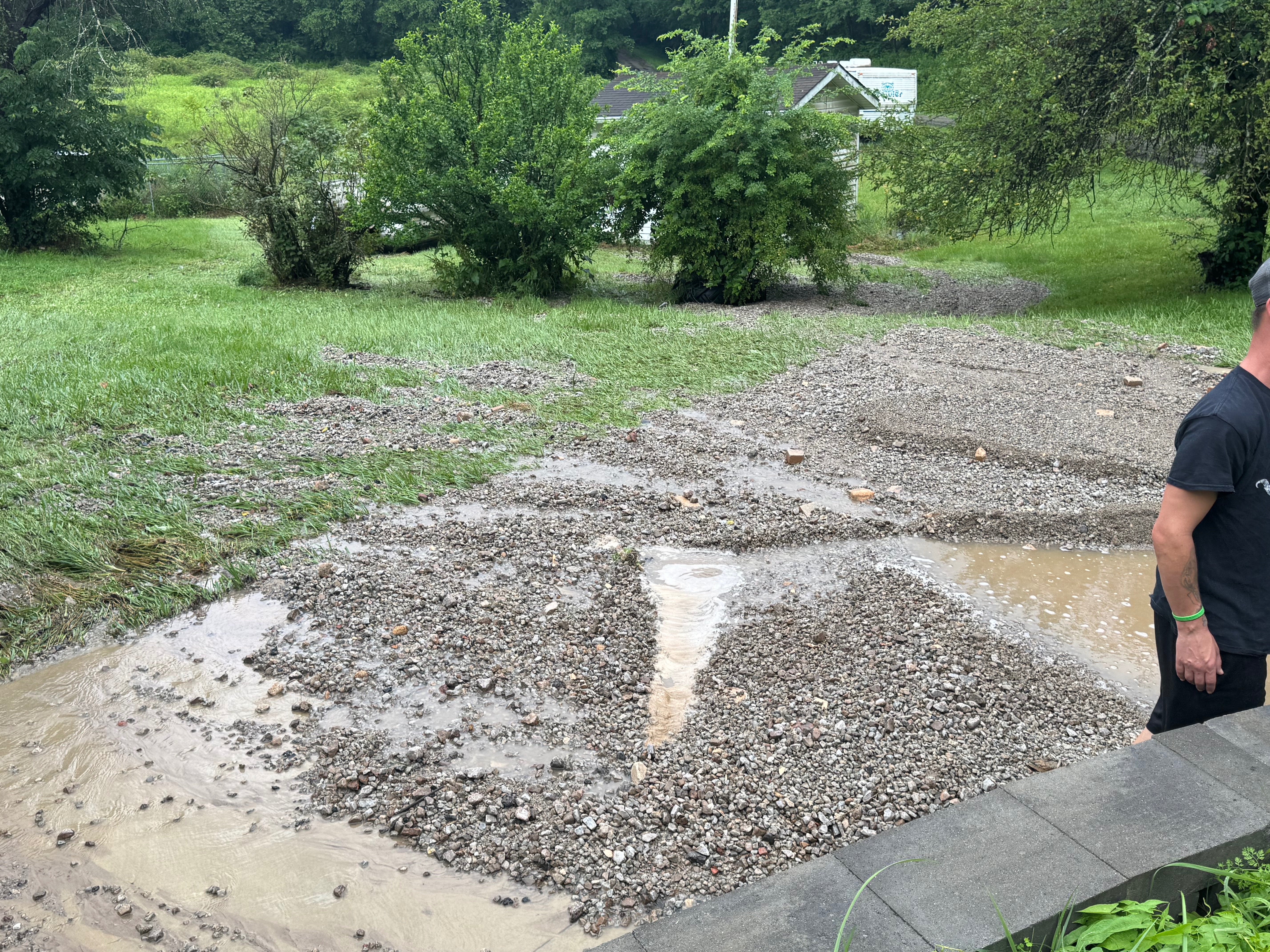 Well, because the county has never done anything about the drainage issues around the house, with this last storm, the neighbor's driveway washed out, blocking the small drainage ditch that is there and diverted all the water right over the retaining wall in front of the house and straight into the living room and basement.