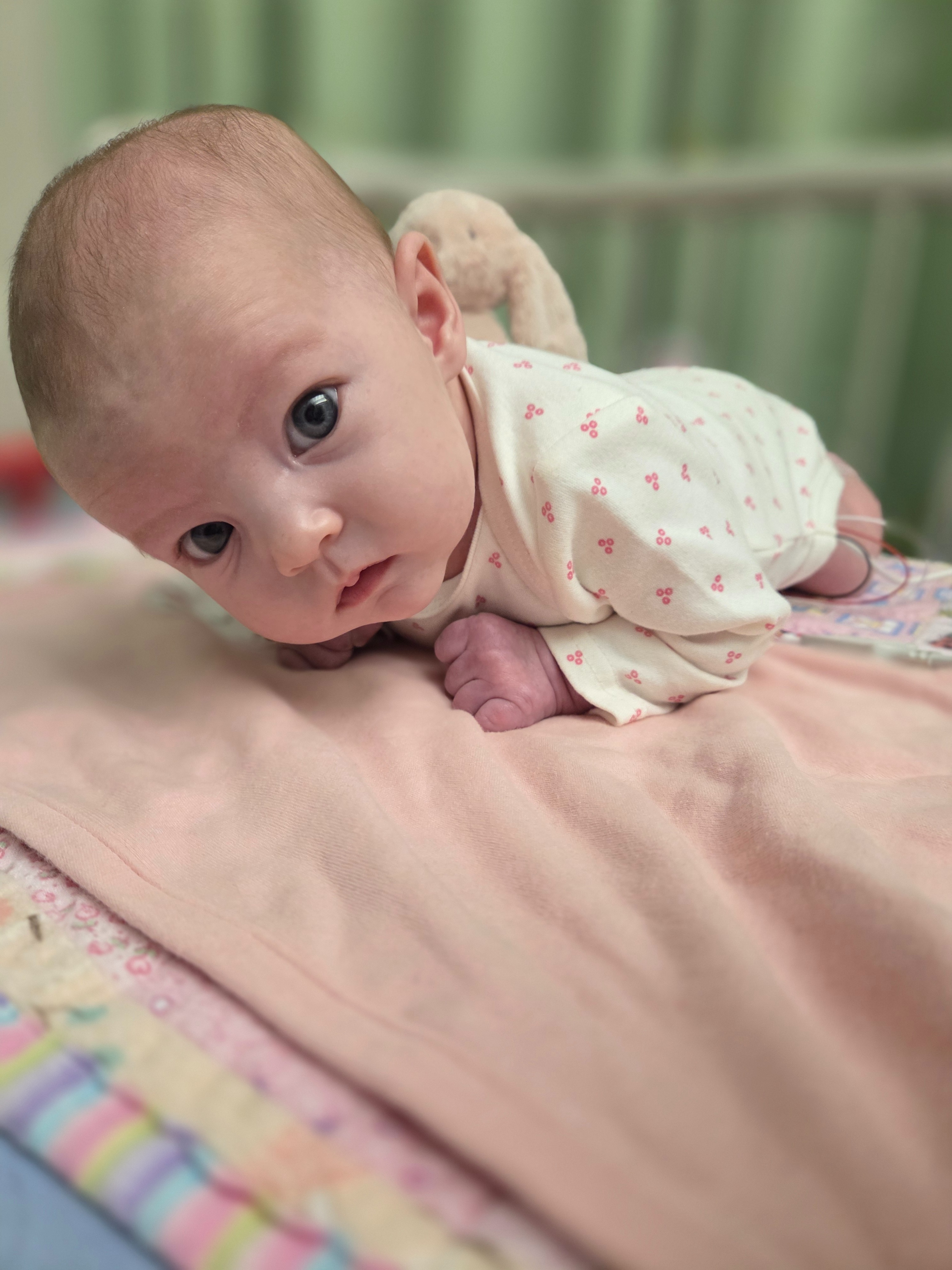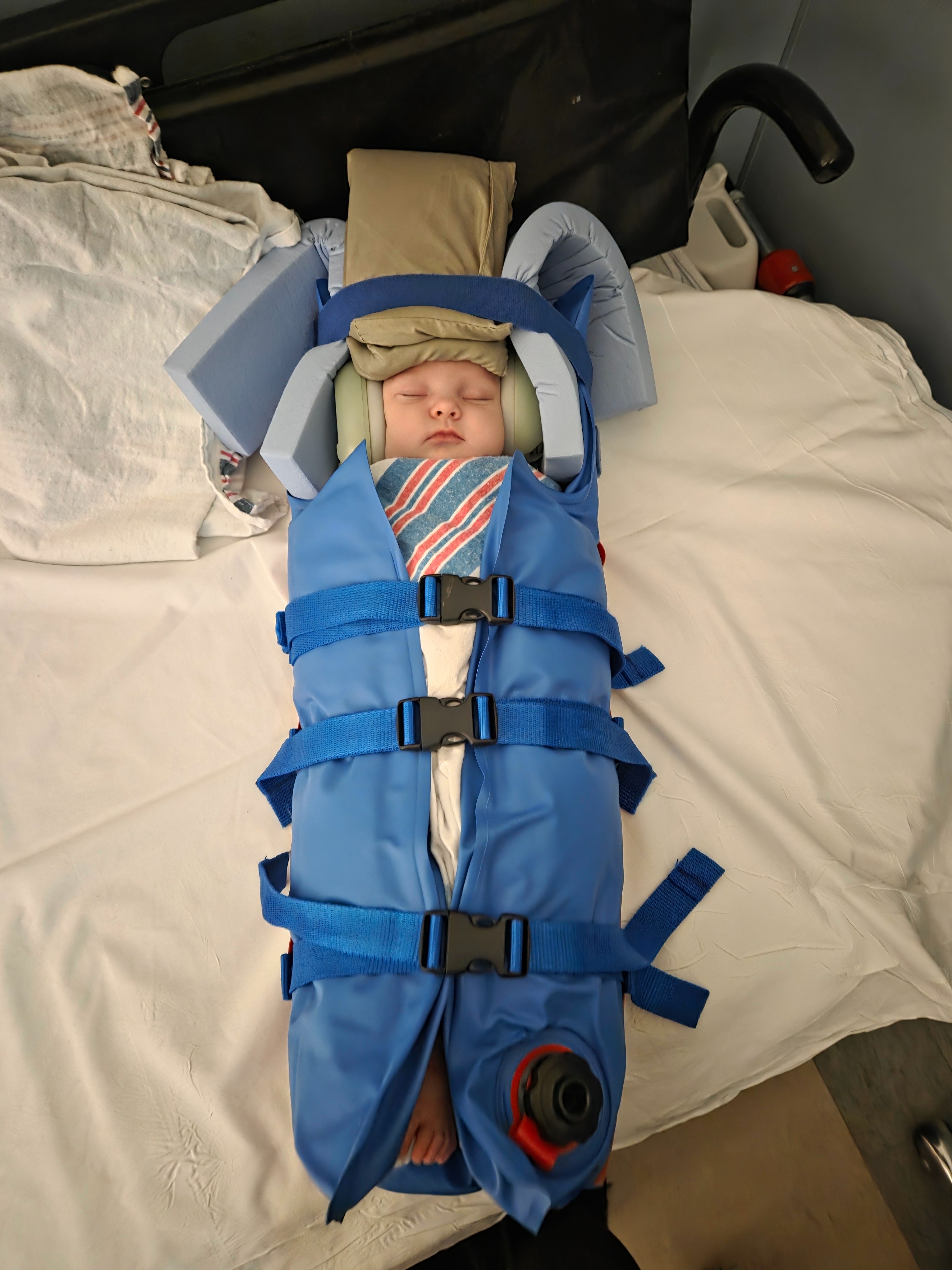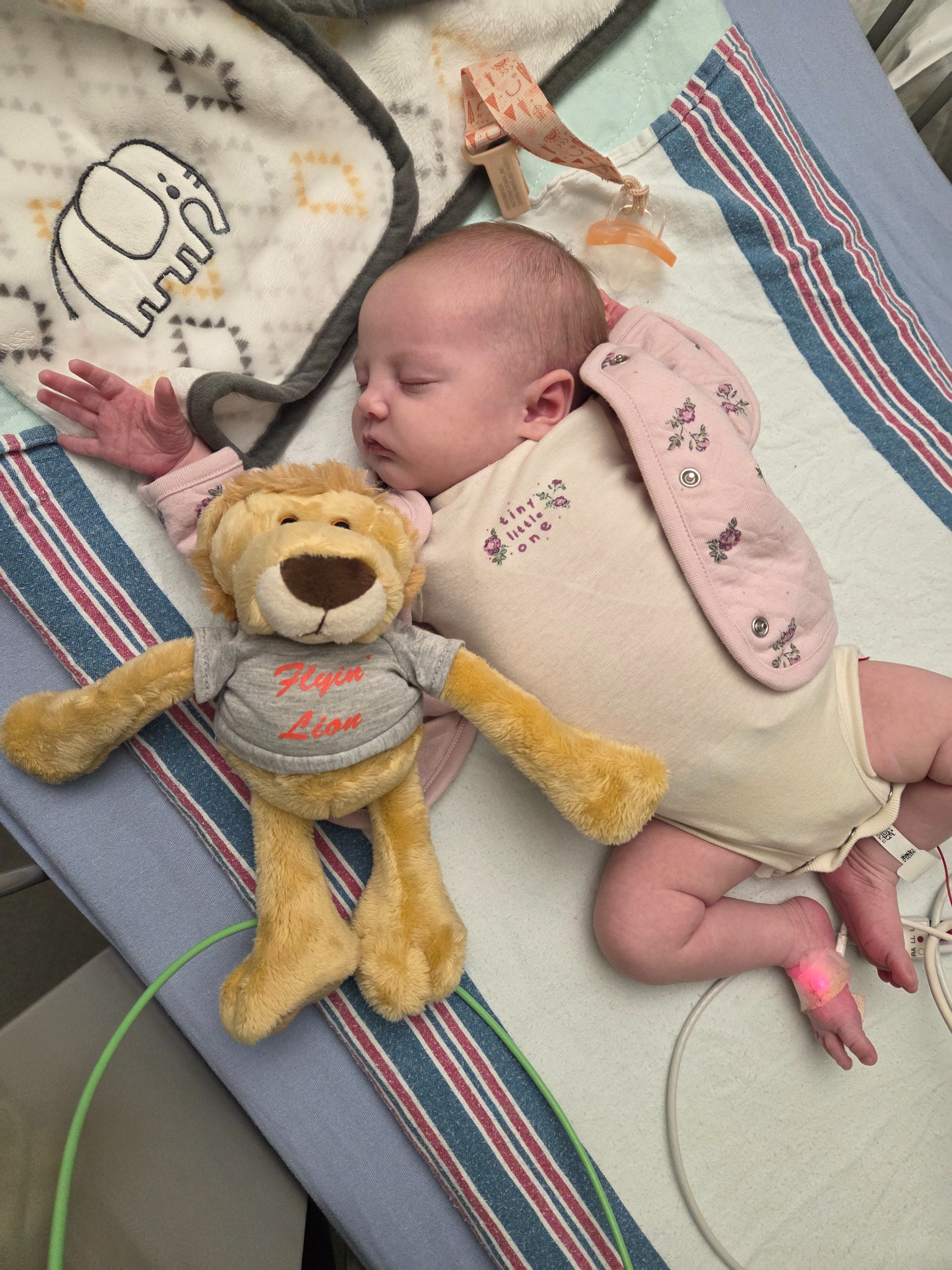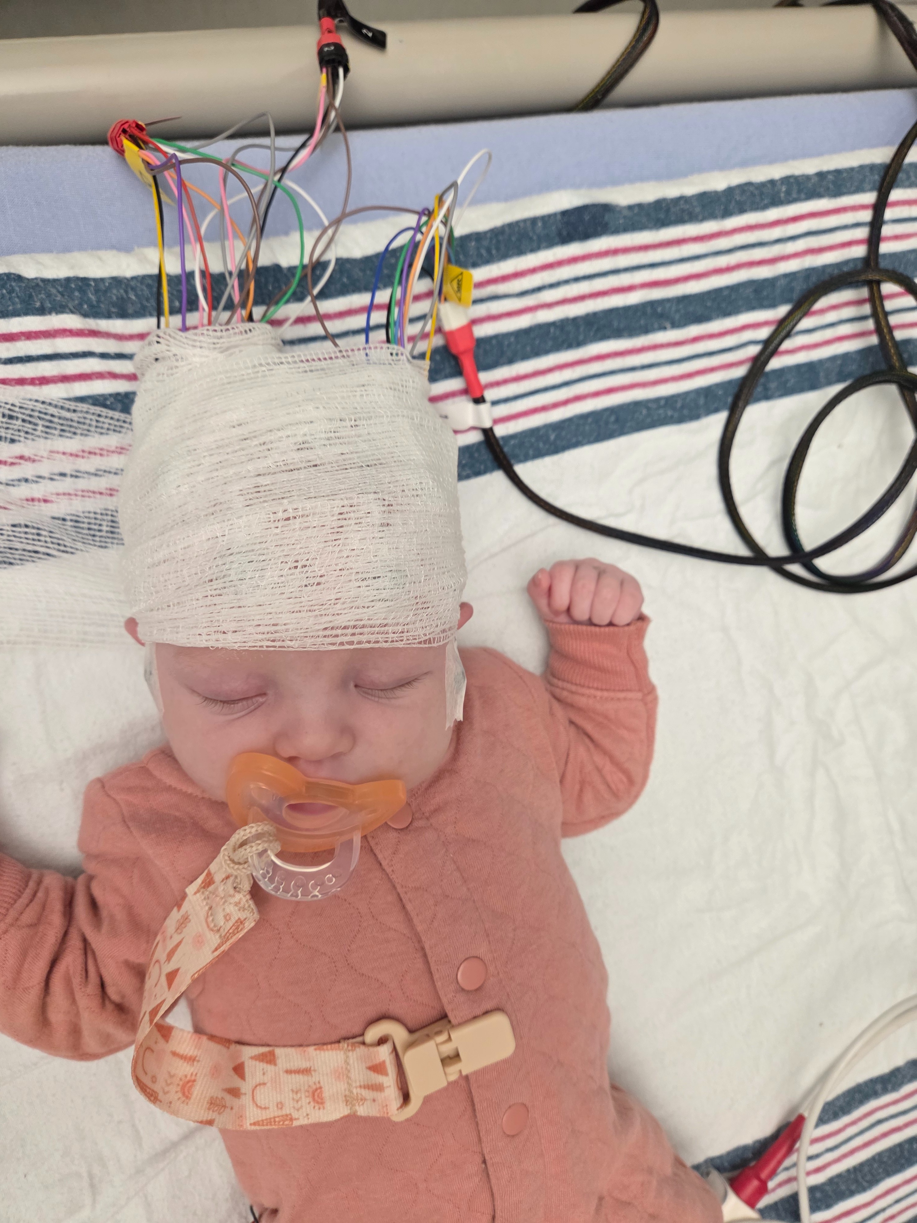 Since then, Anara has gone through more medical procedures in her first month of life than many adults ever will. She has had a spinal tap, extensive infection testing, constant monitoring, EEGs, an MRI, and multiple evaluations with pediatric specialists and neurologists. As her episodes became longer, more frequent, and more severe, she was transferred from our home in Temiskaming Shores to North Bay, and eventually flown by Ornge to CHEO in Ottawa so she could get the specialized care she needs.