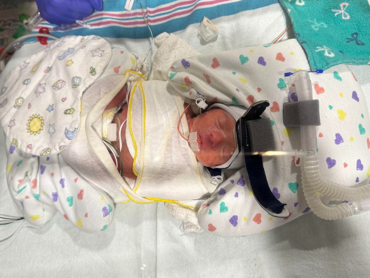Isla is 33 weeks, day of life 40 today (1/3/25). She weighs 4 pounds 7 ounces. She is in an open crib, and weaning off her respiratory support. She continues to amaze us daily!