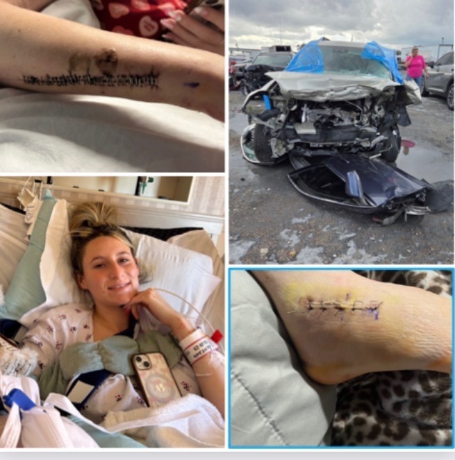 Bailey is a 20-year-old who had just completed Cosmetology School @ Aveda in Baton Rouge and was preparing for her State Boards when her accident occurred. She was on her way home from working at Lit Pizza, driving down La1 in Brusly, headed northbound, when a woman who was headed southbound was traveling in the wrong lane and hit Bailey head-on! The woman was killed in this accident, which left Bailey hospitalized for 4 weeks! During this time, Bailey underwent 3 different surgeries, including a broken arm (placing pins/plates in her right forearm), a broken right foot and right ankle (placing pins/plates), and a broken left hip in which doctors placed 2 plates. Other medical issues included a severe cut to the bone of her right knee, and her left leg being put in traction with pins through the left knee. While in the hospital, Bailey underwent occupational therapy and physical therapy to prepare her for her trip home. Bailey is non-weight bearing, which means she can't put any weight on either leg and needs assistance to and from the bed to use the bathroom or into her wheelchair.