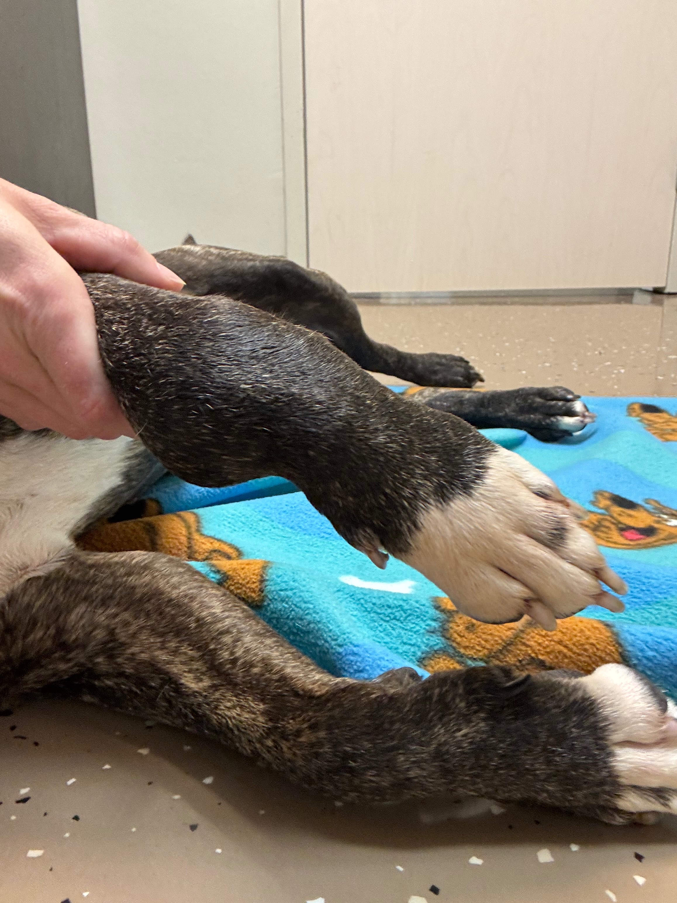 On May 8th, I noticed Bane limping. Within a day or two, a bump was showing on his ankle. Thinking it was a break or fracture, I couldn’t take him to the vet right away due to financial reasons. I’m a stay at home mom to 4 & struggling to regain stability again as of now, as embarrassing as that is to admit. Almost a month later, a great friend of mine, Chuck Reardon, took my dog to the vet for me to get some answers as the bump is growing by the day. Immediately after x ray, the veterinarian came back with a diagnosis of Cancer. Osteosarcoma in his left wrist. The bump is a tumor. X rays showed the cancer has not traveled outside of his leg. Chest & Lungs are clear of cancer. The only treatment is amputation. The vet expressed how important it is for his leg to be removed as quick as possible before the cancer could spread. He’s being treated by Community PetCare Clinic in Toledo Ohio.