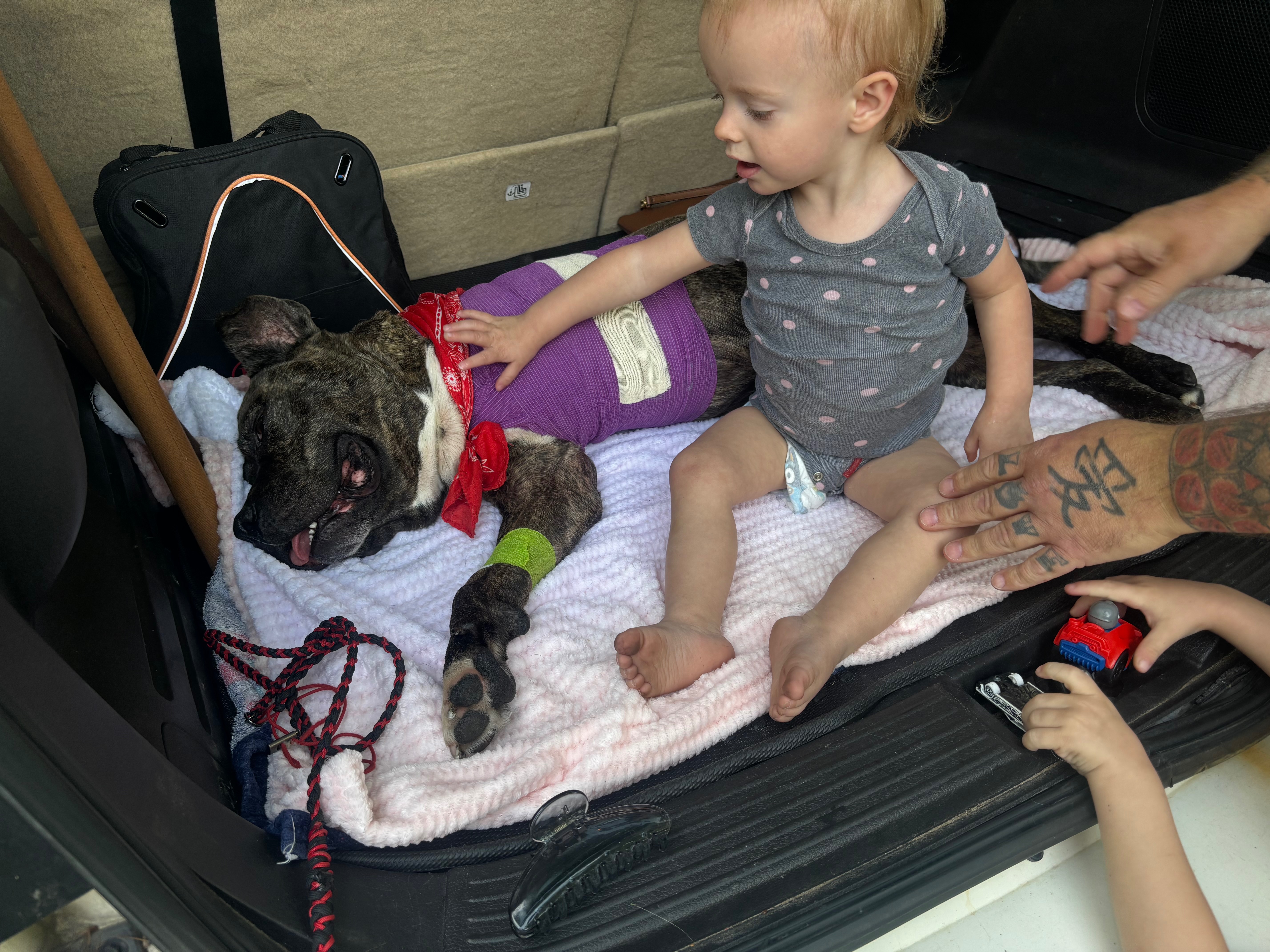 UPDATE: 6/14/25 Friday morning, sedation was starting to wear off completely. Bane was very confused & didnt know what has happened to him. But once he seen his whole family showed up for him, he started making big strides. And guess what?!?! HES WALKING & doing such an amazing job considering his leg was amputated just YESTERDAY. My children was so happy to see him but also sad at the same time. Understandable. Bane has a long journey ahead of him & we’ll be here next to him every step. Please everyone don’t give up yet & keep the support coming. Anyway you can give some support, is so amazing and so appreciated. We didn’t let him move around too much today bc he needs to rest to heal but I’ll say that after seeing him stand up & walk right to me, a lot of my concerns are fading away. ❤️❤️ Keep us in your thoughts and prayers. Please keep sharing the GoFundMe & please keep telling Banes story. ❤️ I’ll update again soon. Thank you everyone.