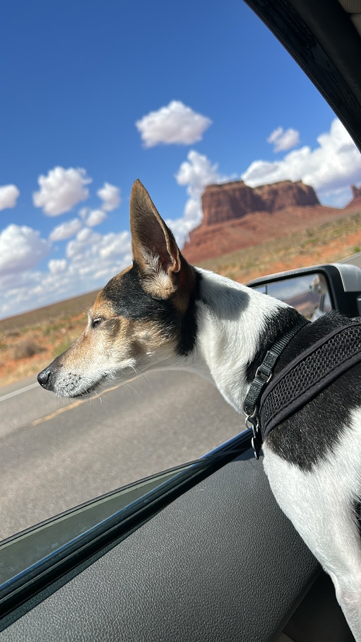 In the fall of 2017 I found Bailee, our alpha. She is a rat terrier/italian greyhound, who was surrendered at age 7 to the Humane Society. She was overlooked so many times and placed in the back of the shelter/out of sight because she was baring her teeth. I met her in a private room and knew instantly she was going to be mine. She doesn't have a mean bone in her body. She was scared and lonely. I took her home that night. Bailee has spent most of her time snuggled in a blanket, resting on a heating pad, or laying/smiling in the sun. My little sun-catcher. It's hard to explain how I relate to Bailee. She reminds me to always love and lead with confidence.... we have both experienced so much loss and found great comfort in knowing we had one another.