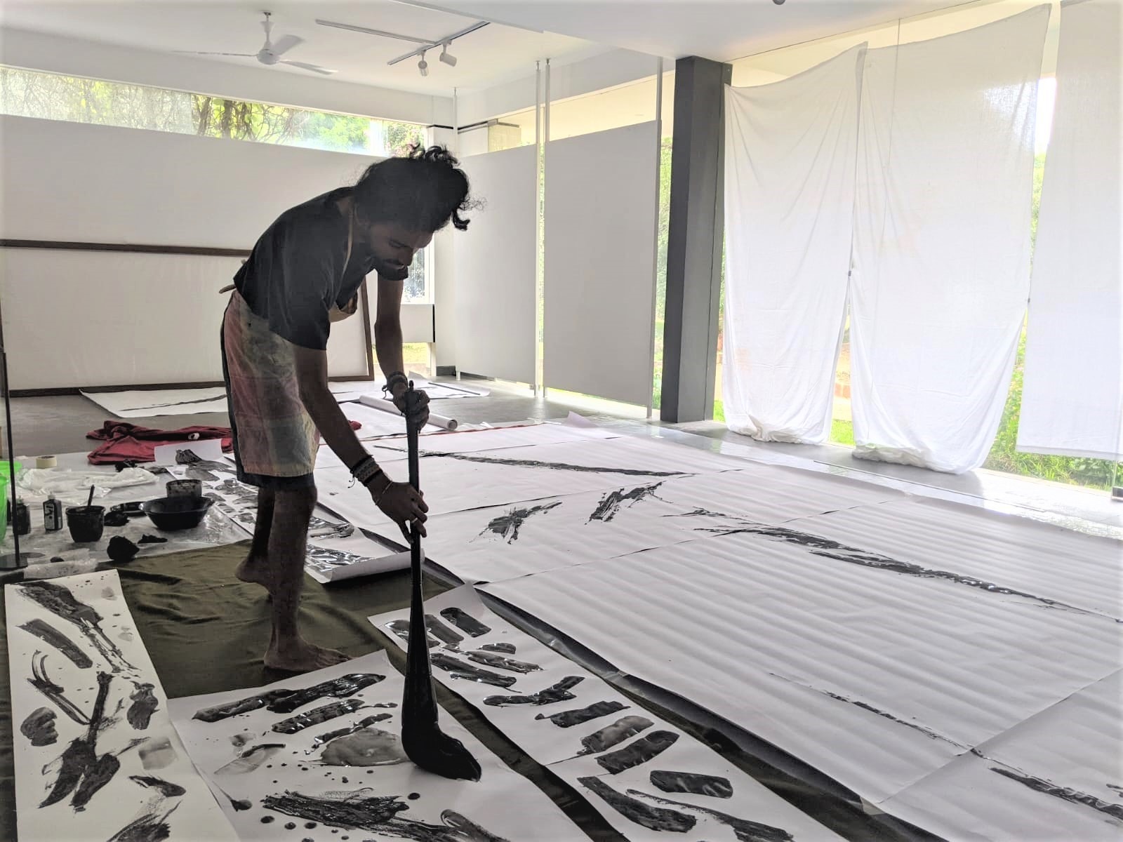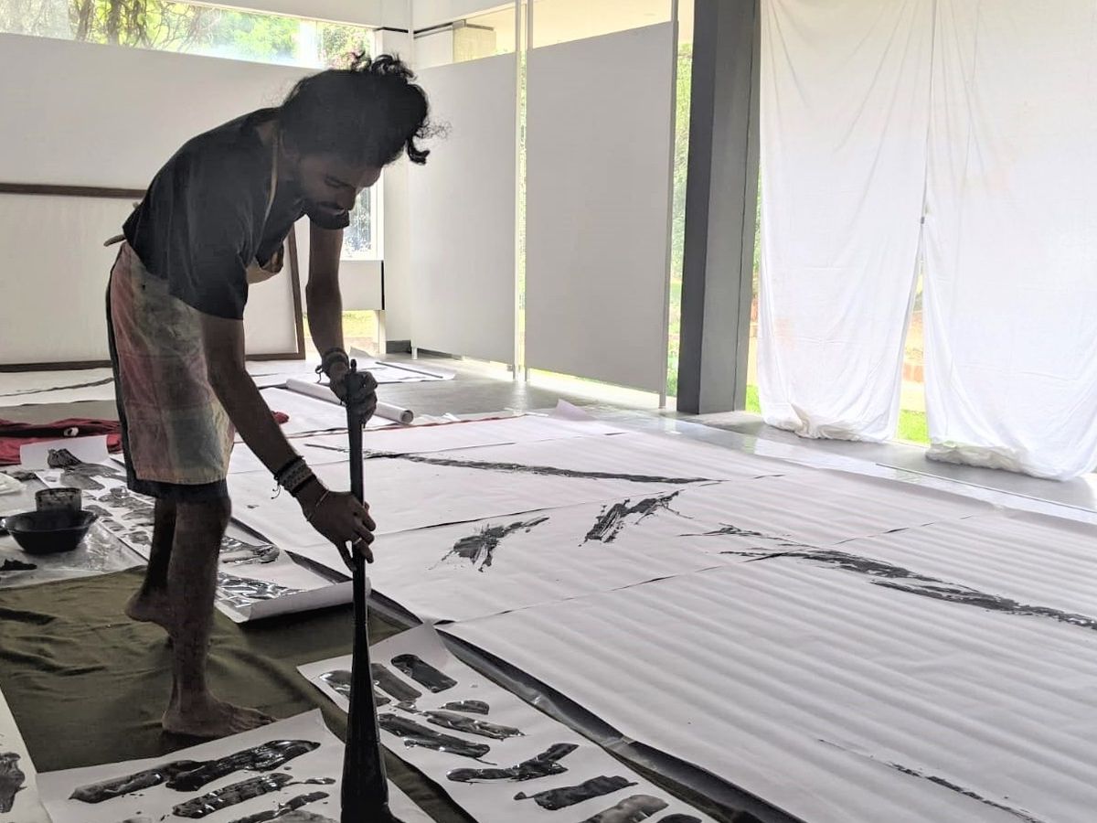 My art is an exploration of movement in its essence and a silent dialogue between the brush and the natural world. I have not been trained through a traditional art school or institute, instead, I chose mentors, who since 2016 have guided me and pushed my practice forward – this, in the context of a unique upbringing in Auroville, constant exposure to international cultures, as well as my Indian heritage.