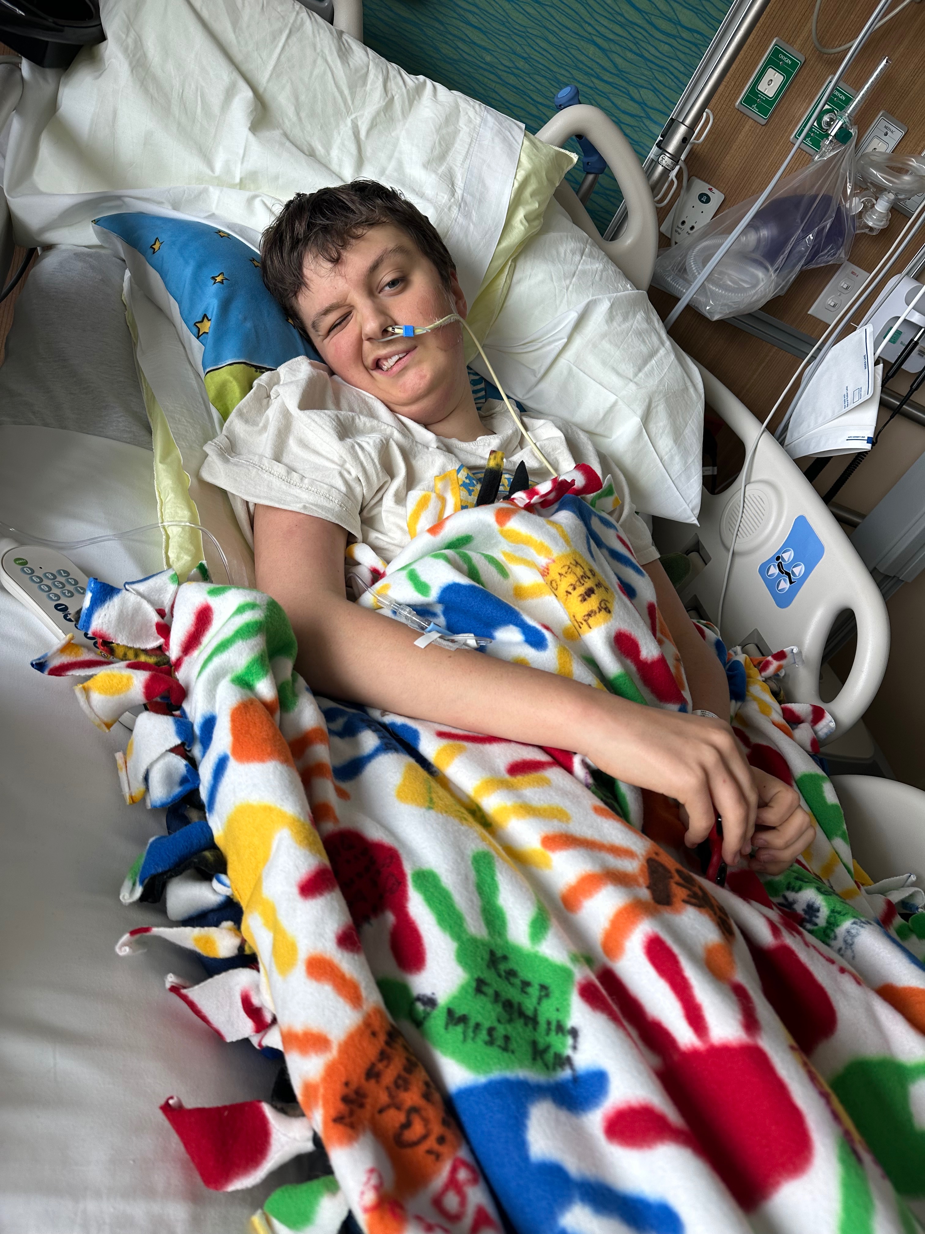 Update 7/17: We have a room on the Tcup floor ♥️ Brody is a hit with the nurses per usual. He is also loving his blanket that his class made for him.