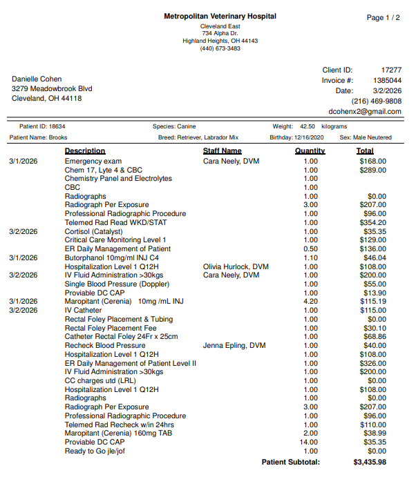 We are raising money because my partner and I do not have the funds and I am very worried he will have to be re-admitted. Brooks is more than a pet — he is our baby. Our constant companion, our comfort on hard days, and the source of so much unconditional love and joy. If you are able to donate, no amount is too small. Even sharing this page would mean the world to us. Every dollar goes directly toward Brooks’ medical care and recovery.