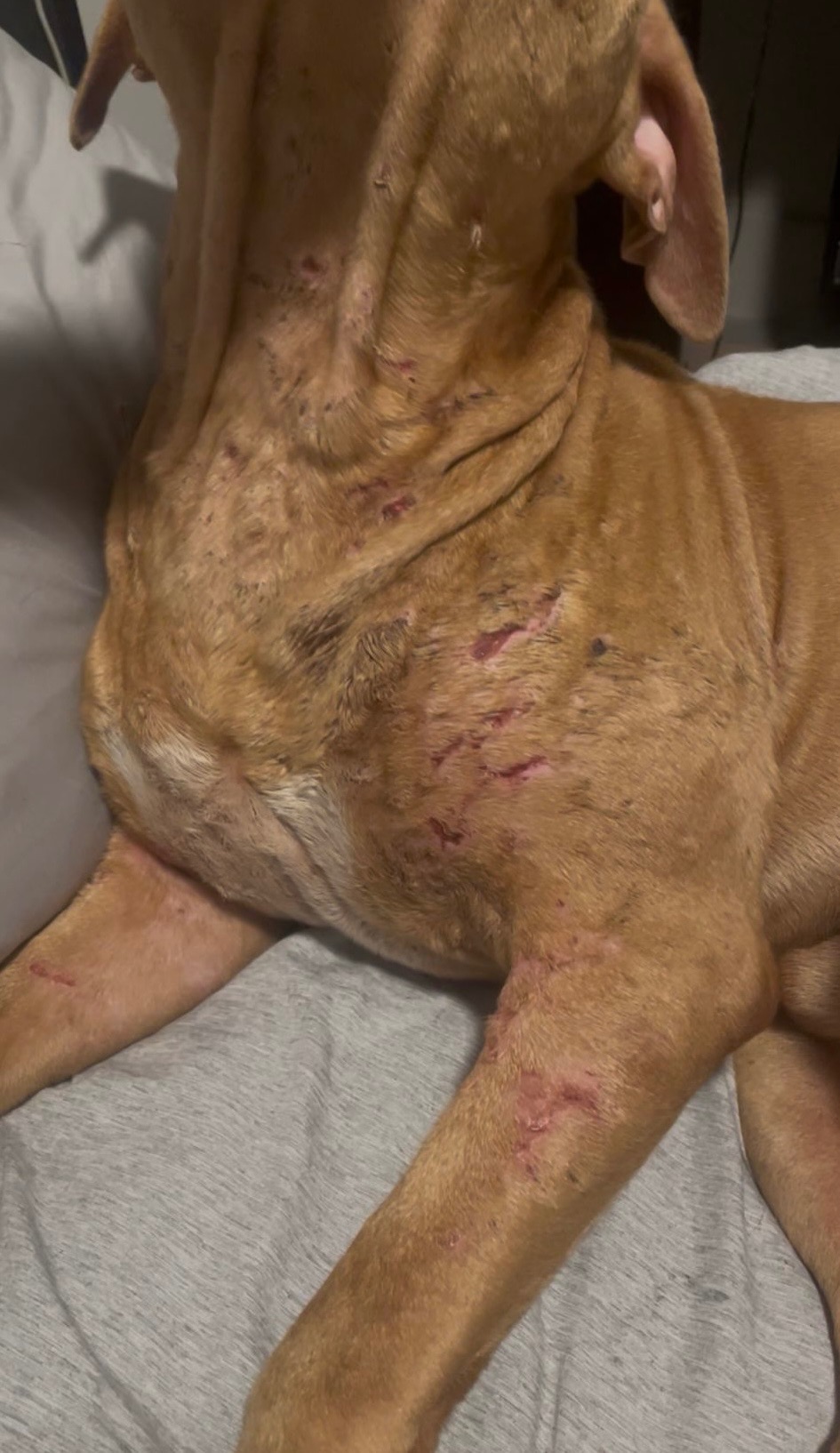 We have taken him in and are managing his wounds as best as possible, but he needs to be taken to a vet.