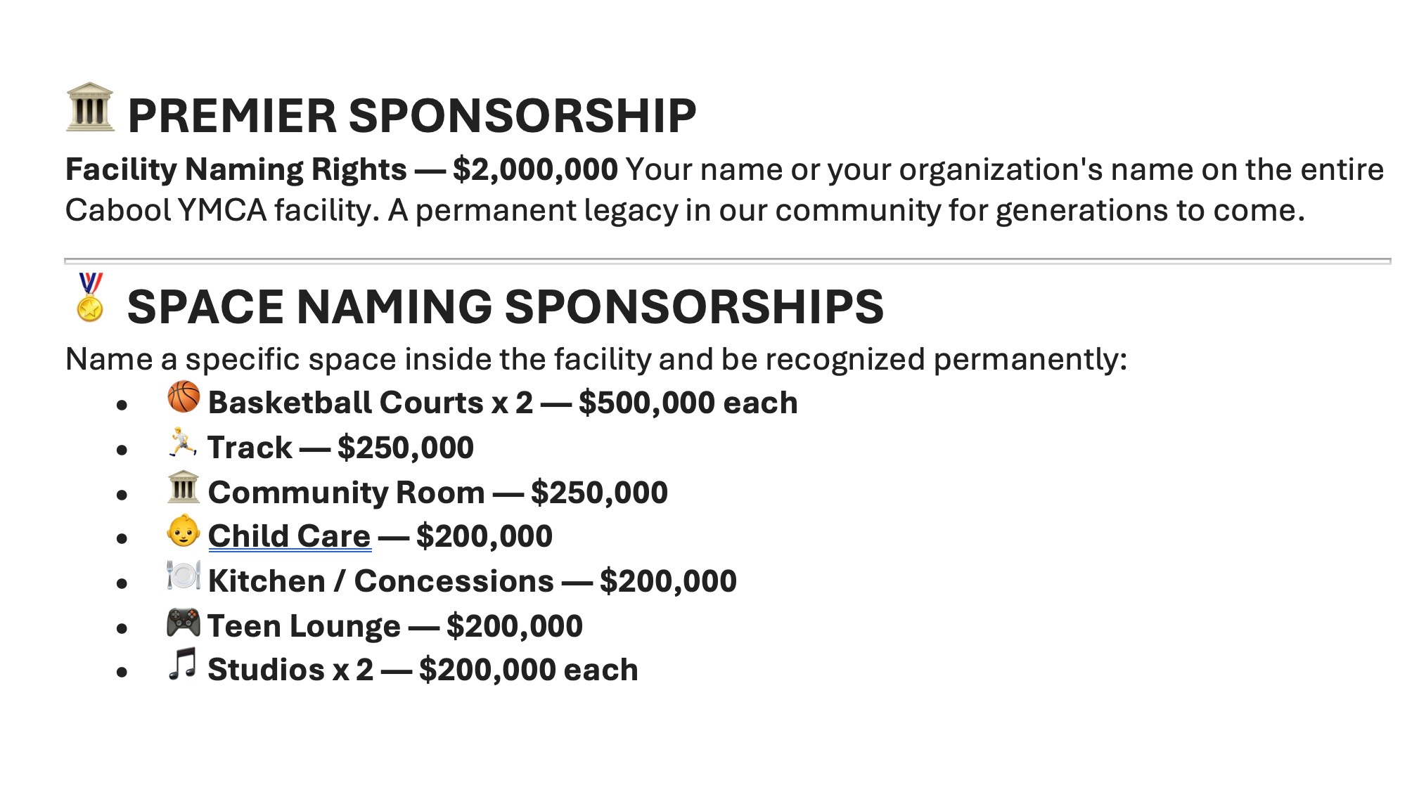 Every dollar raised goes directly toward building a facility that will strengthen our community for years to come. Whether you give $10 or $10,000, you are helping make the Cabool YMCA a reality.