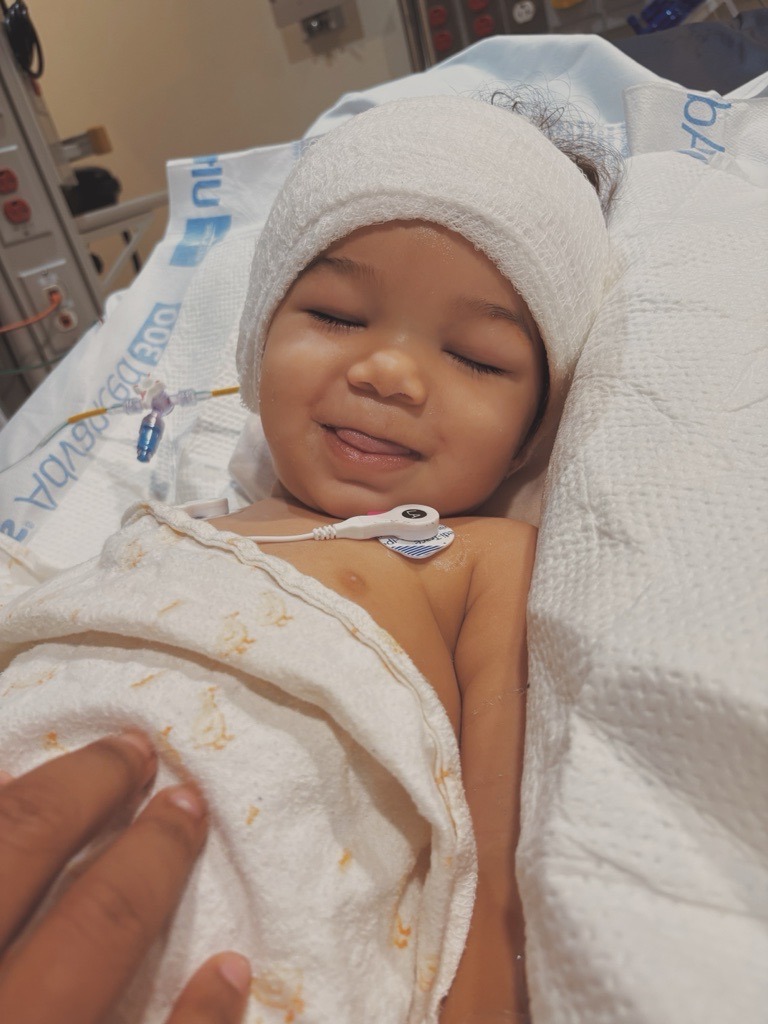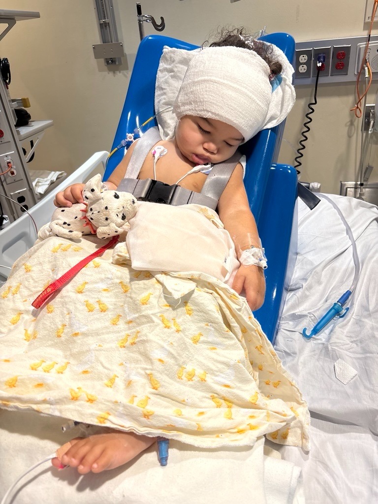 We expected answers about ear issues — but instead, the scans revealed a brain tumor that was blocking spinal fluid and placing extreme pressure on his brain. Cade was immediately admitted, and the medical team at Brenner’s went right to work. The first urgent step was to insert a brain EVD to relieve the dangerous pressure. Just a few days later, on October 27th, he underwent major brain surgery to remove the tumor.