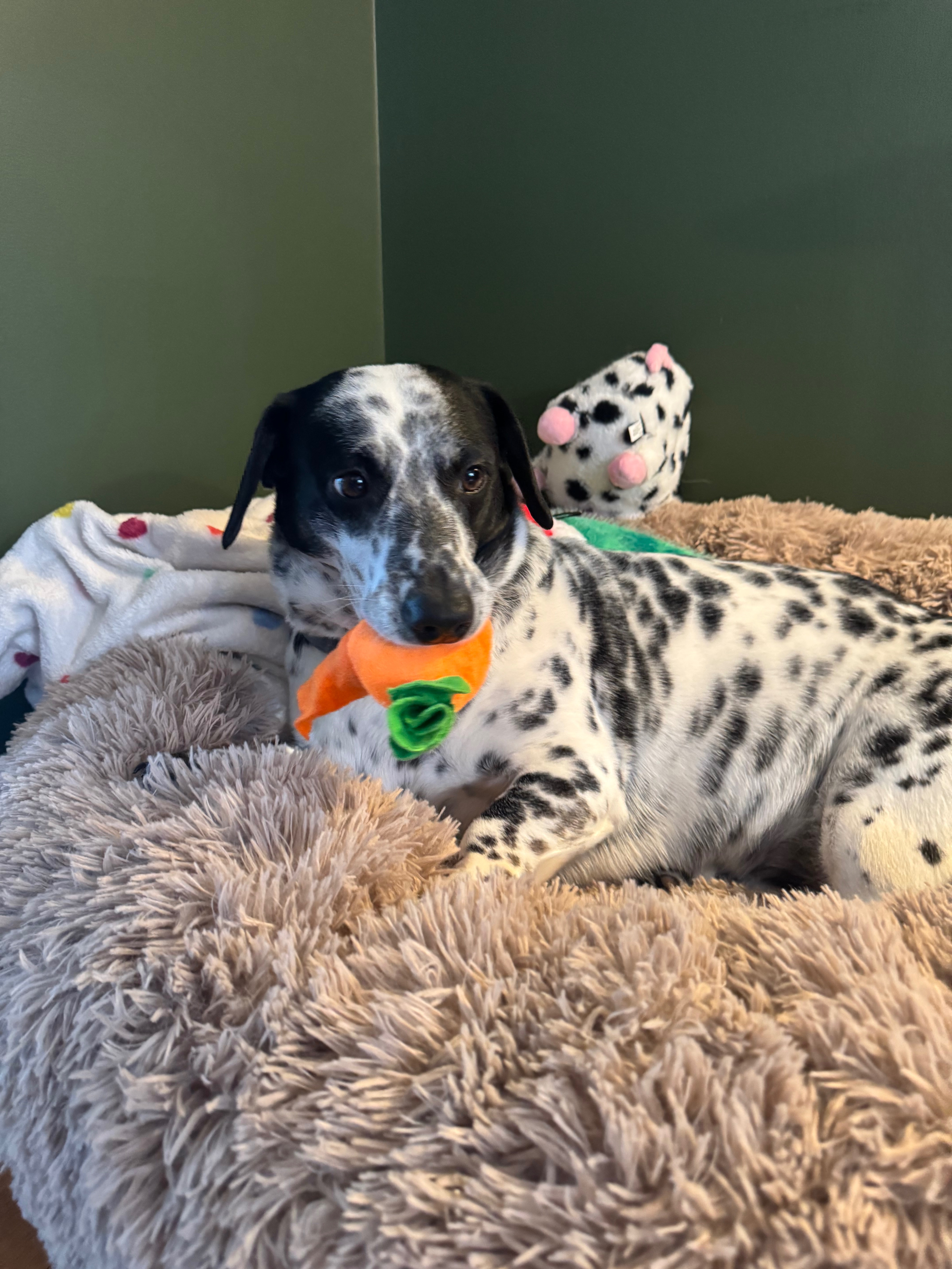 On Friday, January 16th on her 7th birthday, Cannoli got way too excited and jumped up to try and reach her birthday treat. Unfortunately, Cannoli landed on her back and lost function of her back legs. This caused a disc to slip and pinch nerves. She needed immediate surgery, a surgery that cost $15,000 up front. We applied for care credit and got $8000 towards the surgery. We still have to pay that back, but we still need at least $8000 to bring her home.