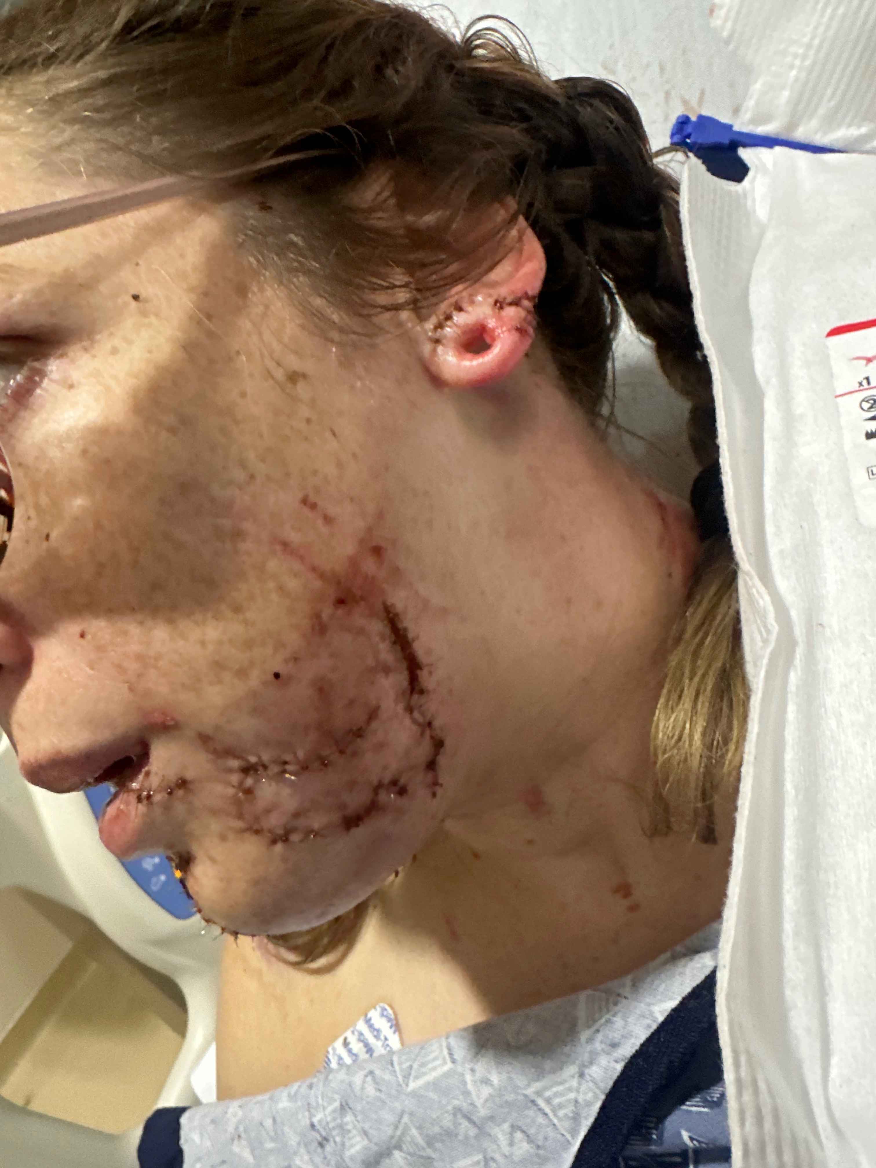 Friday night November 7th, 2025 my sister Cara was attacked by a dog abandoned in their care a 5 year old mastiff named Odin. 2 of their dogs got in a fight and when Cara successfully got them apart Odin was let back in since he was in the back yard at the time. As soon as he was let in without warning he attacked. We are unsure what provoked the attack but what we do know is Cara has a long road to recovery. Unfortunately 2 out of her 3 kids were present and saw the entire thing happen. She was life flighted from our local hospital by helicopter to a level 1 trauma hospital in Mesa. We couldn’t have asked for a better team to take care of her in the trauma unit and they allowed us to stay by her side the entire time. Me, her mother, and her fiance Oscar stayed by her side the entire time. I understand the pictures are distressing to see but necessary to understand the magnitude of the situation. The day after she under went a 4 and a half hour facial reconstruction surgery by an incredible surgeon. The damage was extensive and she did lose part of her right ear. We are asking for help for their family in this time. They are a hard working 2 income household with 3 children to support and we just are trying to get together enough to help cover food and some small expenses during this time. To everyone who has checked on her and shown love to her we are eternally grateful. Cara thrives off of family connection and her loved ones. We are so thankful she is alive and home now recovering. If you can’t donate we understand just sharing would mean the world to us ❤️.
