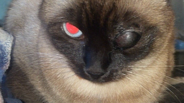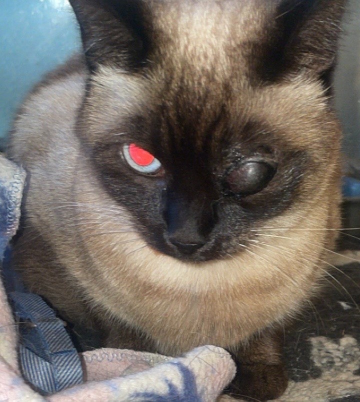 Our 3-year-old kitty, Catalina needs emergency surgery to remove one of her eyes (enucleation) and support after surgery to recover. Catalina is a sweet and smart Siamese cat who loves to go outside and explore the neighborhood. Recently, after one of her outdoor adventures, she came home with a severe eye injury. Her eye was completely black and hard, with only a small amount of dried discharge.