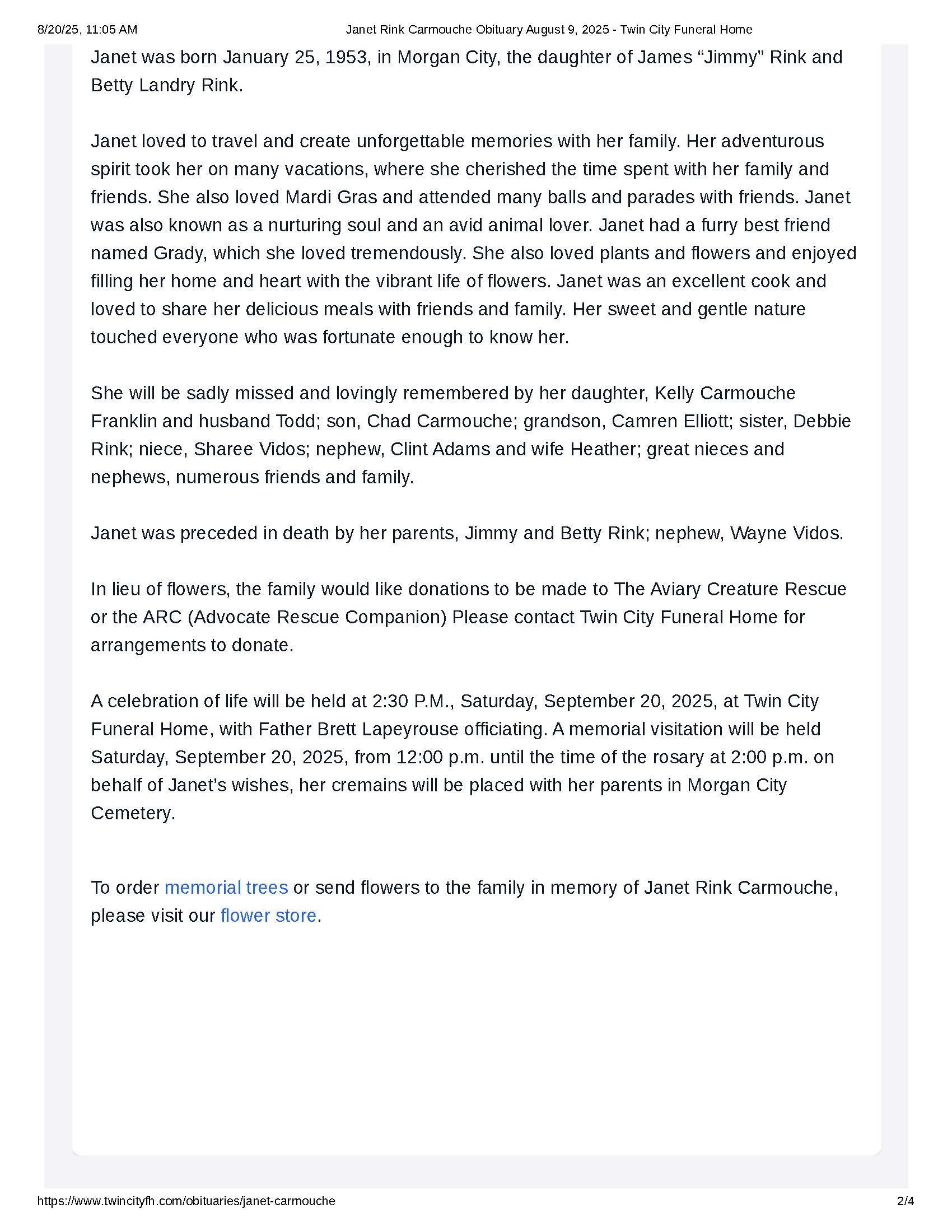 Hi everyone. My name is Chad Carmouche. I recently became sober and completed rehab. During that process, my Mom became ill and subsequently passed away. I am in California and she is in Louisiana. I came to California to get sober, and succeeded. My Mom never got to see me in person in my sobriety before she died. Now I may miss her memorial service in Louisiana because I don't have the funds to travel from California to Louisiana. That's what this Go Fund Me is about: obtaining the funds to be present at my Mom's memorial, and to then return to California. I am on a fixed disability income, so this is why I humbly ask for help.
