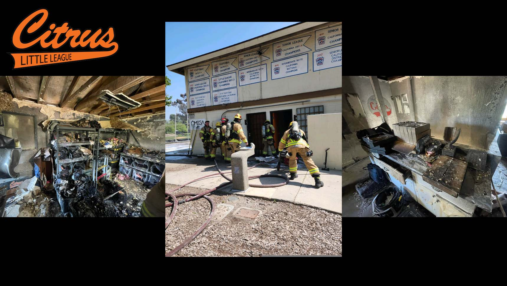 On May 3rd, 2024, at approximately 2:20pm Citrus Little League was the victim of burglary and arson. Not only was the building damaged, but the long standing history and items close to all of the families of Citrus were lost in the fire as well. This was not just a snack bar, it was also used to store all of the kids equipment, Citrus merchandise, tables, chairs, sound equipment for walk up music and games, i-pads, etc. The loss of this has really effected the children and families of the Citrus community as things that can not be replaced were lost as well - original Citrus Little League banner, a letter from the White House for the American Flag that was flown at the White House and donated to Citrus, All Star team pictures ranging from the 80's through to early 2000's and countless pins, shirts, and classic memorabilia from past and present Citrus families.