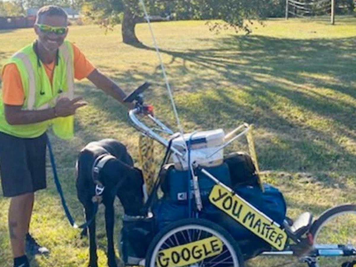 Hello, my name is Cindy and my brother is Clinton S. Baker. Here is his situation in his words. My name is Clinton Baker for the past 5 years, I’ve been walking across the United States with my loyal dog Medusa. We started this journey on February 9, 2019, with one mission: to raise awareness about suicide prevention and to be a voice for those struggling and the families left behind.