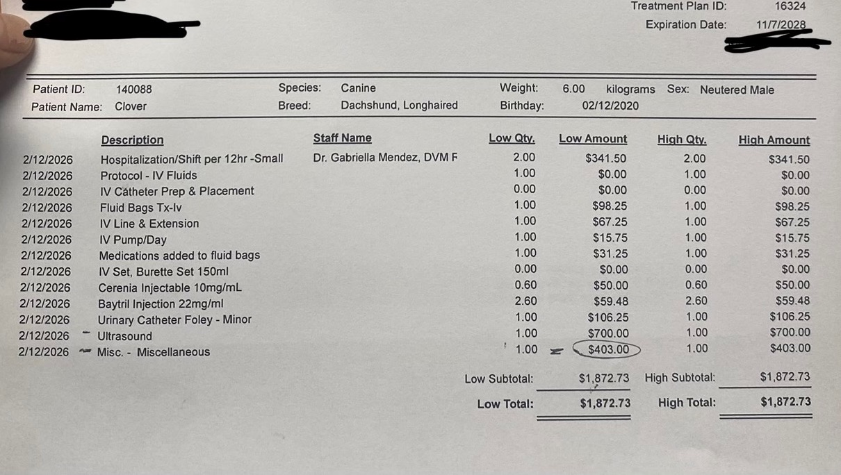 i got home on wednesday february 11th to find he was very lethargic and vomiting. he hadn’t eaten and was having trouble keeping water down without vomiting it out. i monitored him closely and tried to give him water in small doses but by the end of the night he was moaning in pain and vomiting consistently. something was obviously wrong so i brought him to the hospital where they had to do x rays, blood work, drain his bladder (which was abnormally full), give him antibiotics, pain medicine, and IV since he was dehydrated. i’ve already paid just over 1000 just to get him in for urgent testing, and i still need to get more tests to find out what is causing the problem. the doctor informed me he will need ultrasound and urine tests just to figure out what is going on, which would cost me another 1800, and this doesn’t cover treatment once we find out what the issue is. i am currently not working, on leave for health issues i’m having myself. i’ve spent just about all i currently have left and still don’t know what’s going on with my little baby.