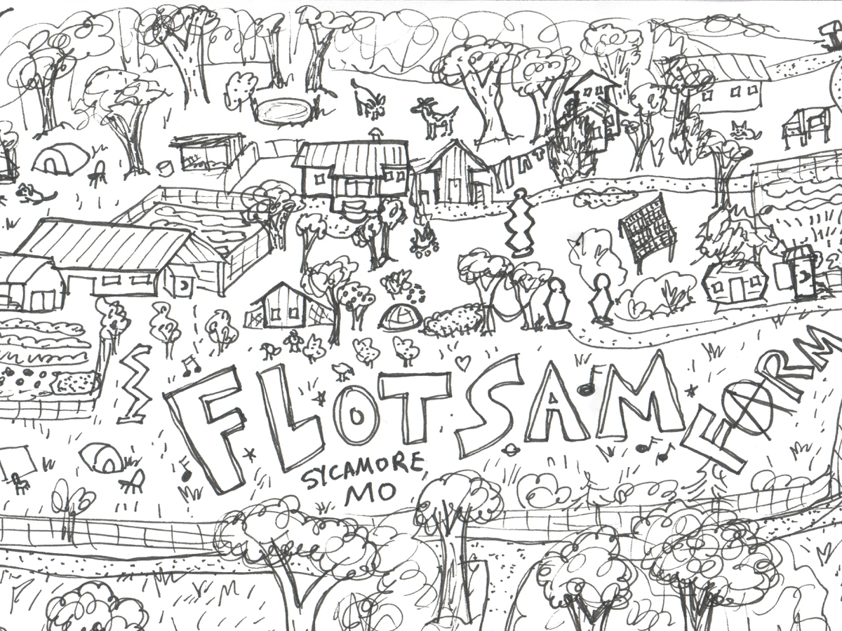 Flotsam Farm is an 8 acre property in the charming river valley of Sycamore, MO. We grow lots of food and try to live sustainably, but our broader focus is building and nurturing community! We dream of a future where human needs are met through cooperation and creativity, and nature is recognized as the sacred force that binds us all together. We are doing our part by hosting a variety of fun, inclusive events centered around music and art, good food, education, and nature! The weekly Sycamore Salon consistently draws 10 to 35 folks each week for good food, learning, expression, and friendship, and fun! Hundreds of people attend annual events, over 40 musical acts played at the farm in 2023, and around 50 potluck meals were shared!