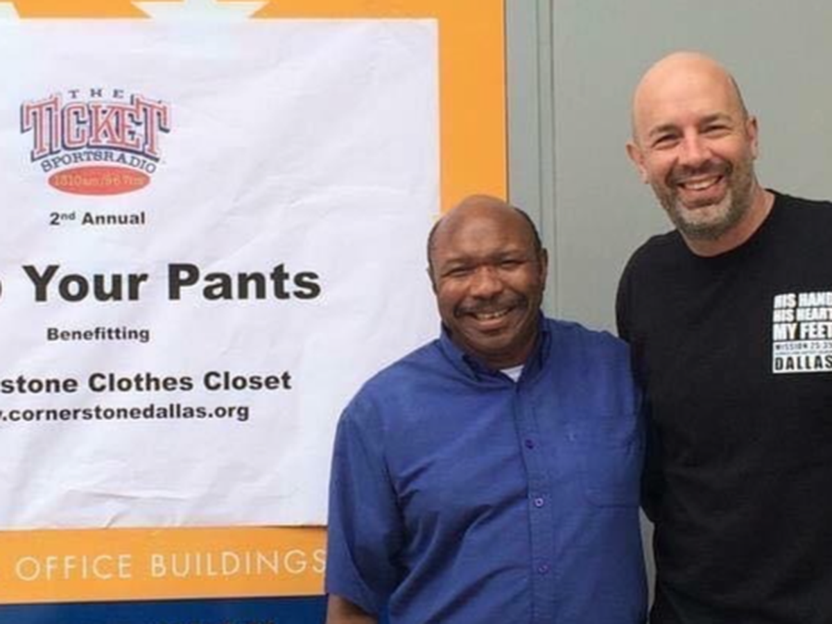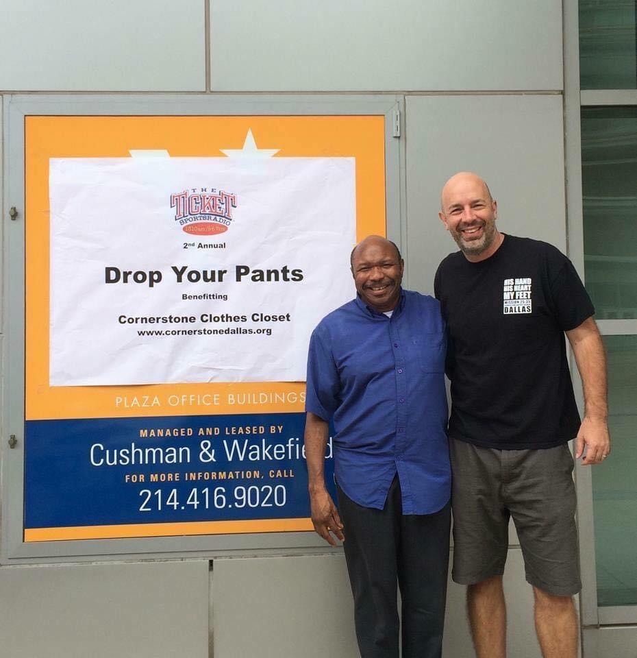 11 years ago, September 2014, Bob Sturm, a sports radio host for 1310 The Ticket, came up with the idea of "Drop Your Pants". This annual event collects clothes and funds for the Cornerstone Clothes Closet and Shower Facility. We will use the monies collected to purchase clothing items from wholesale vendors when we fall short on actual clothing donations. We also only give away new socks and new underwear. The need for clothes at the clothes closet continues to rise as we meet the needs of the homeless and less fortunate in South Dallas. This fundraiser is so important to our ministry. We will use the funds to purchase blue jeans, underwear, socks, backpacks, winter jackets, toiletries, and so much more from wholesale vendors.