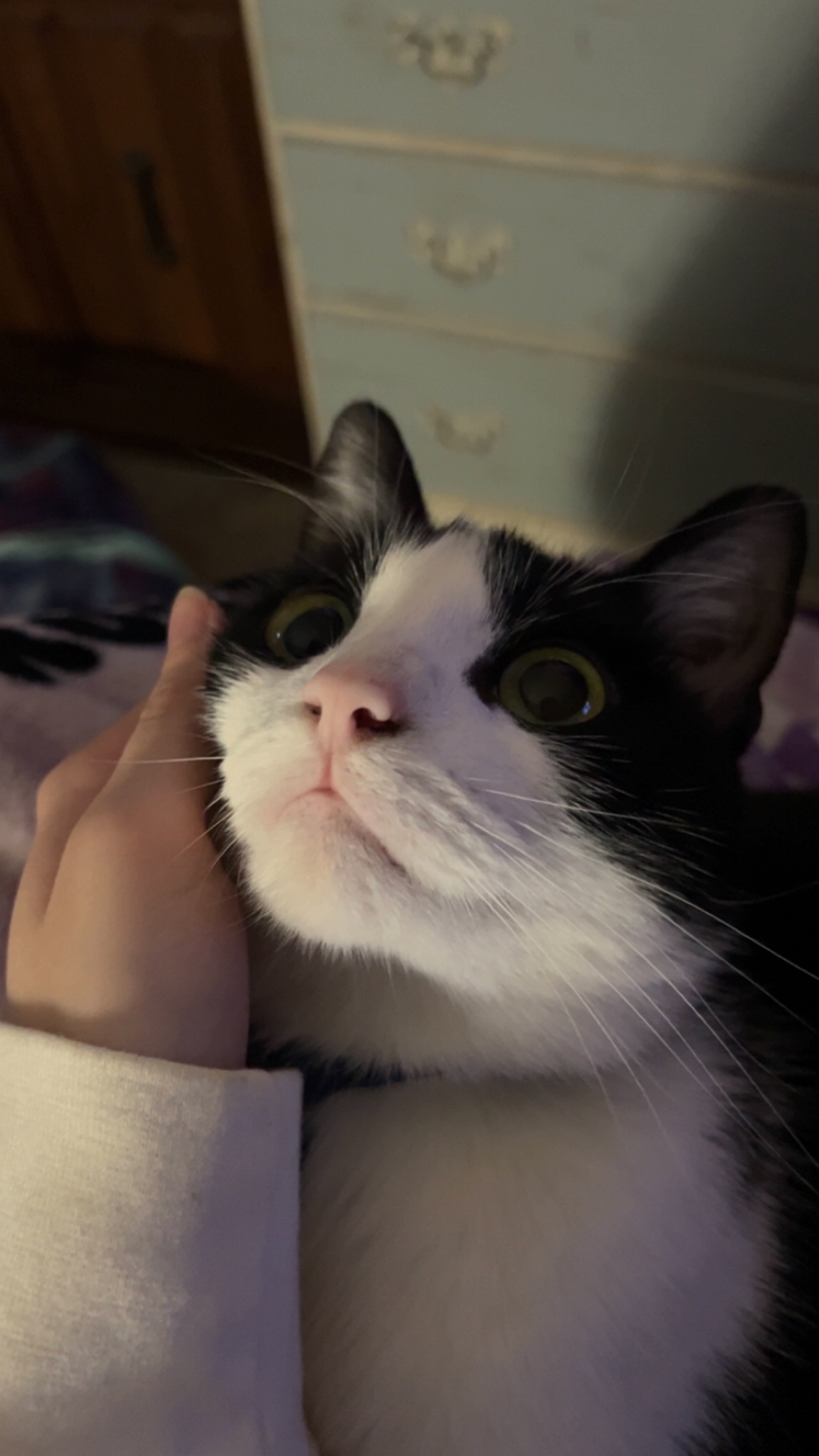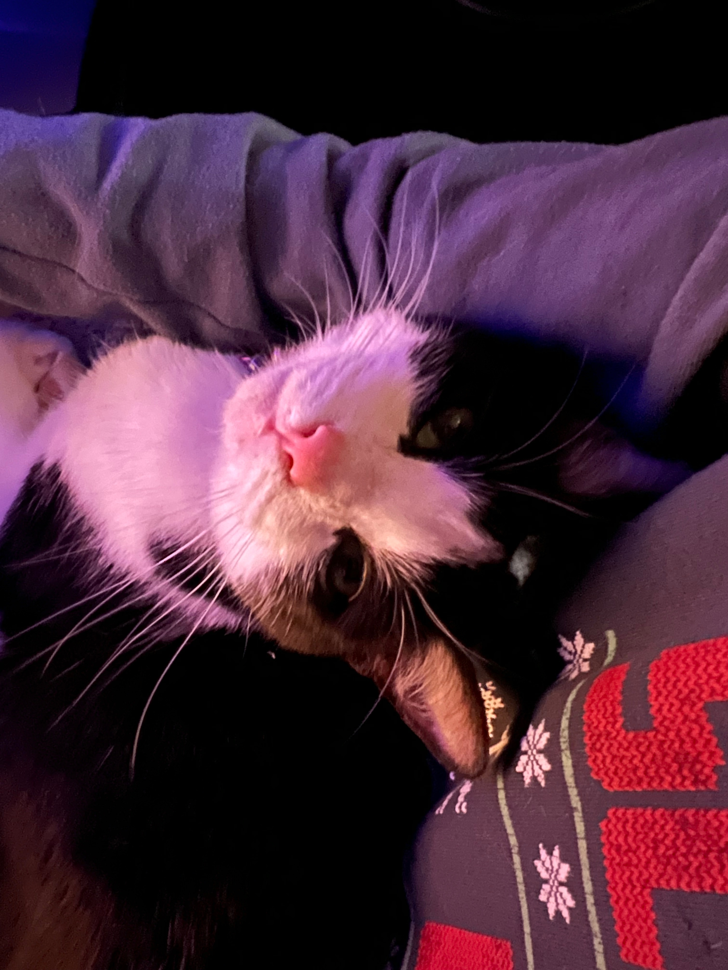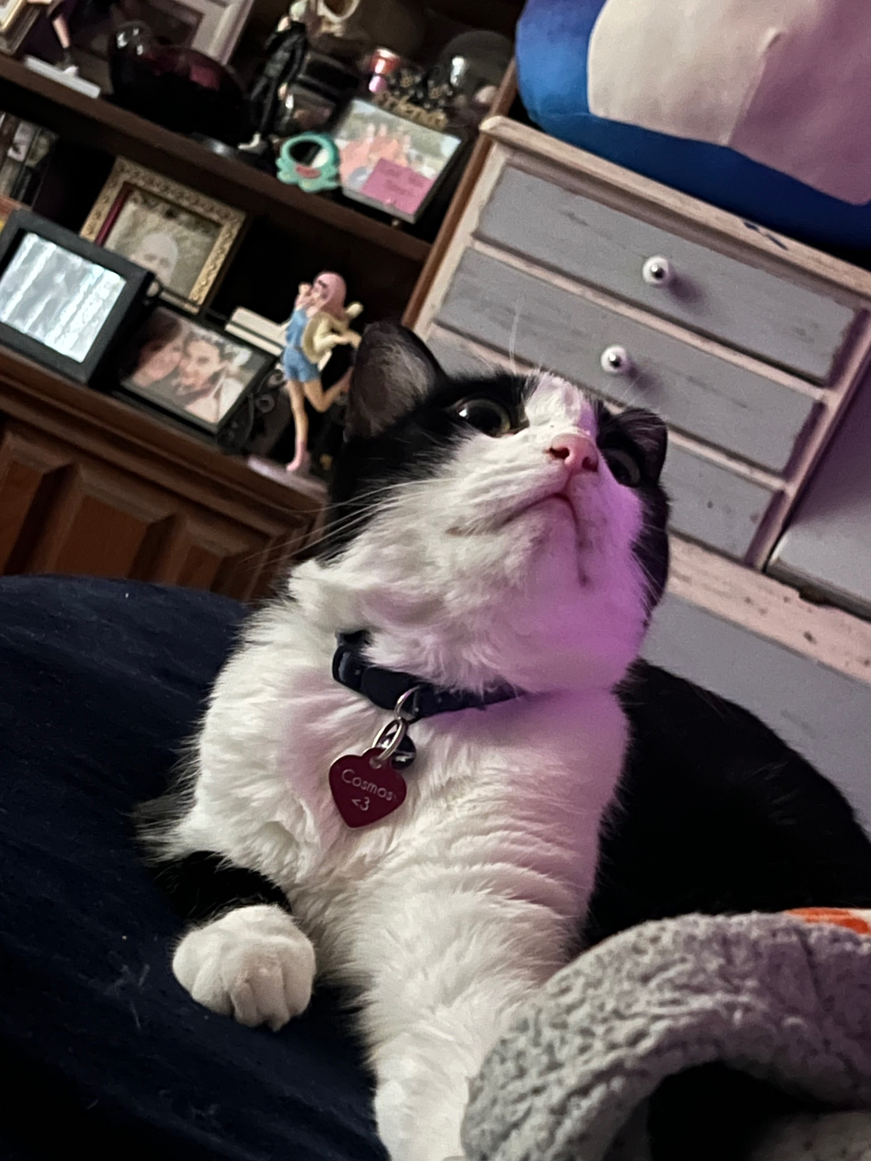 Cosmos is an almost 3 years old tuxedo cat.