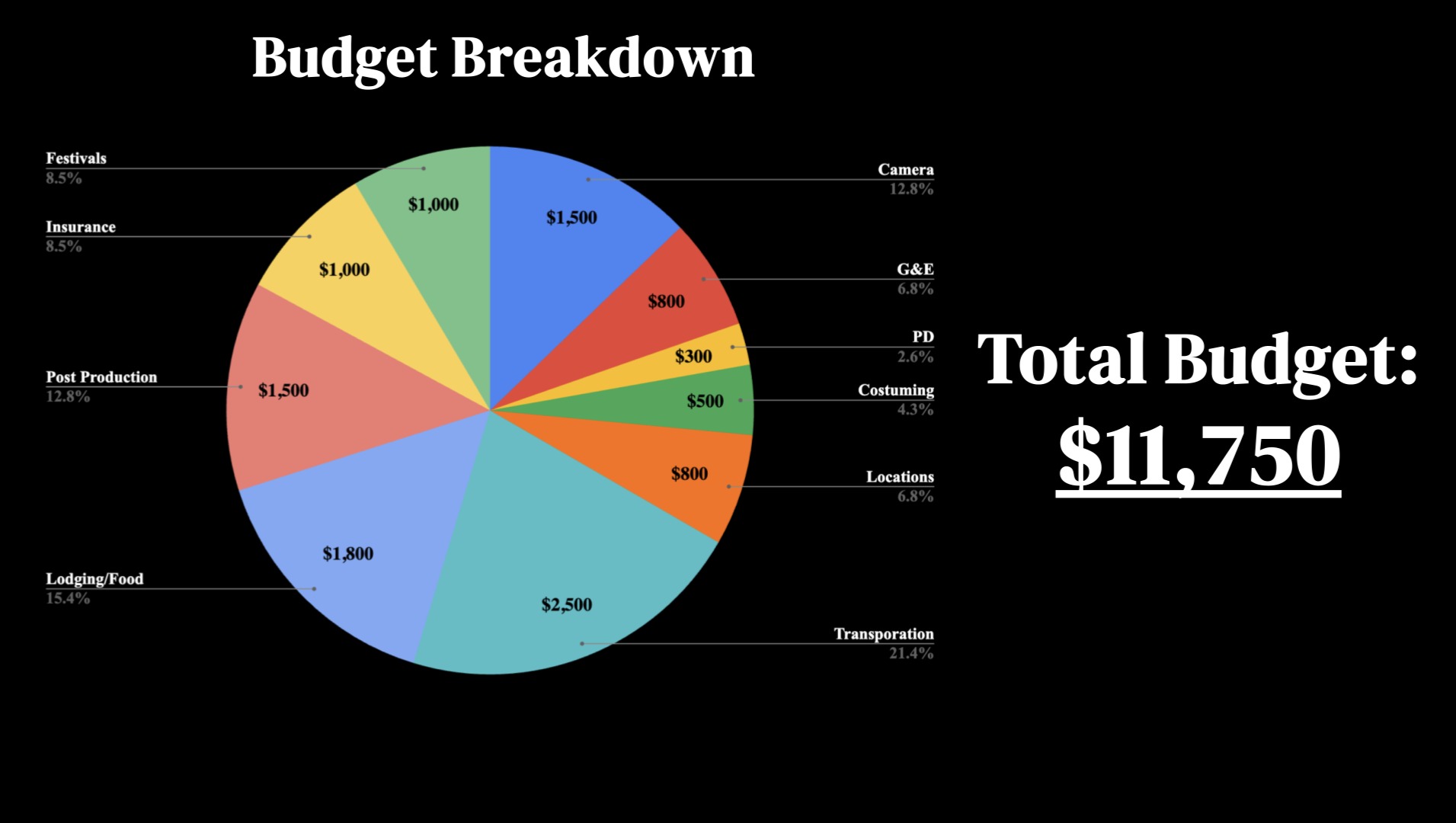 Below is a pie chart that illustrates our specific budget needs: