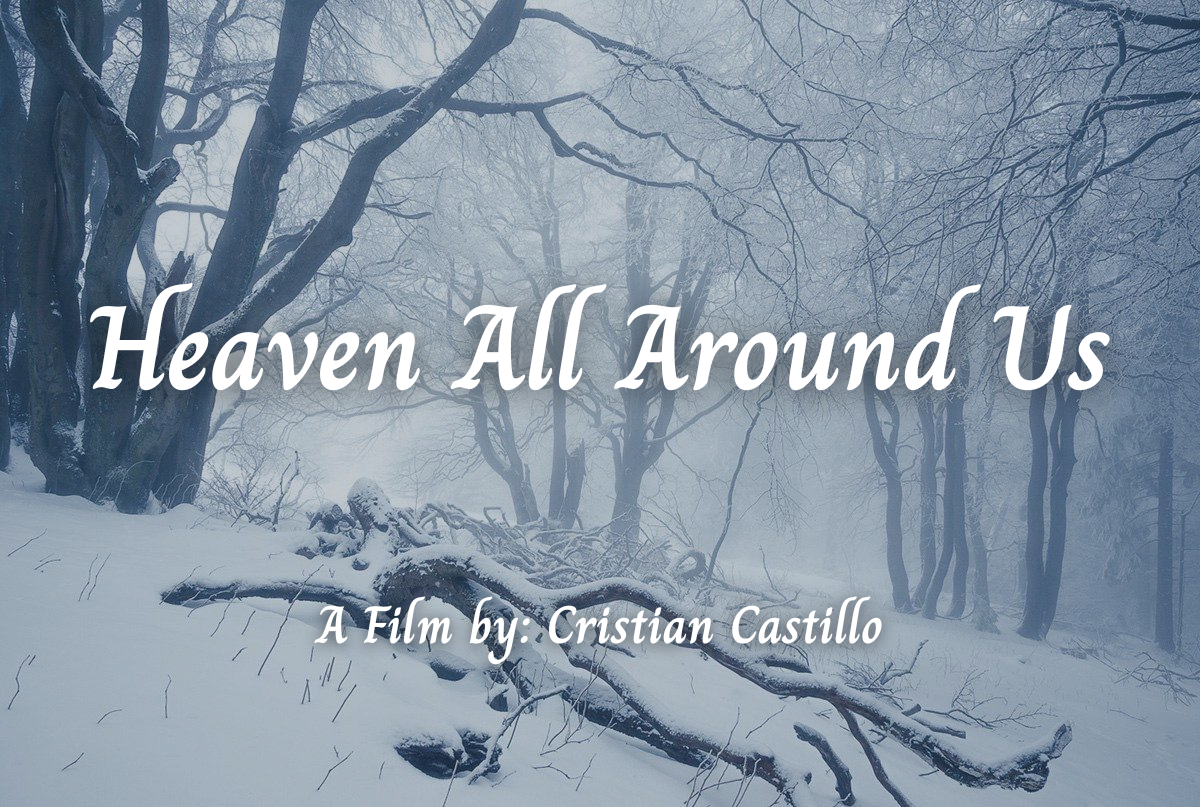 Heaven All Around Us is centered around Andres, a dedicated young man who is ordained by God to deliver a holy gift across a snowy forest. In the intense cold, he falls unconscious, but is saved by a young woman, Alejandra, who shelters him in her cave. She shows him fire for the first time, and together they discover that the divine gift he was tasked to protect isn’t for God, but for each other.