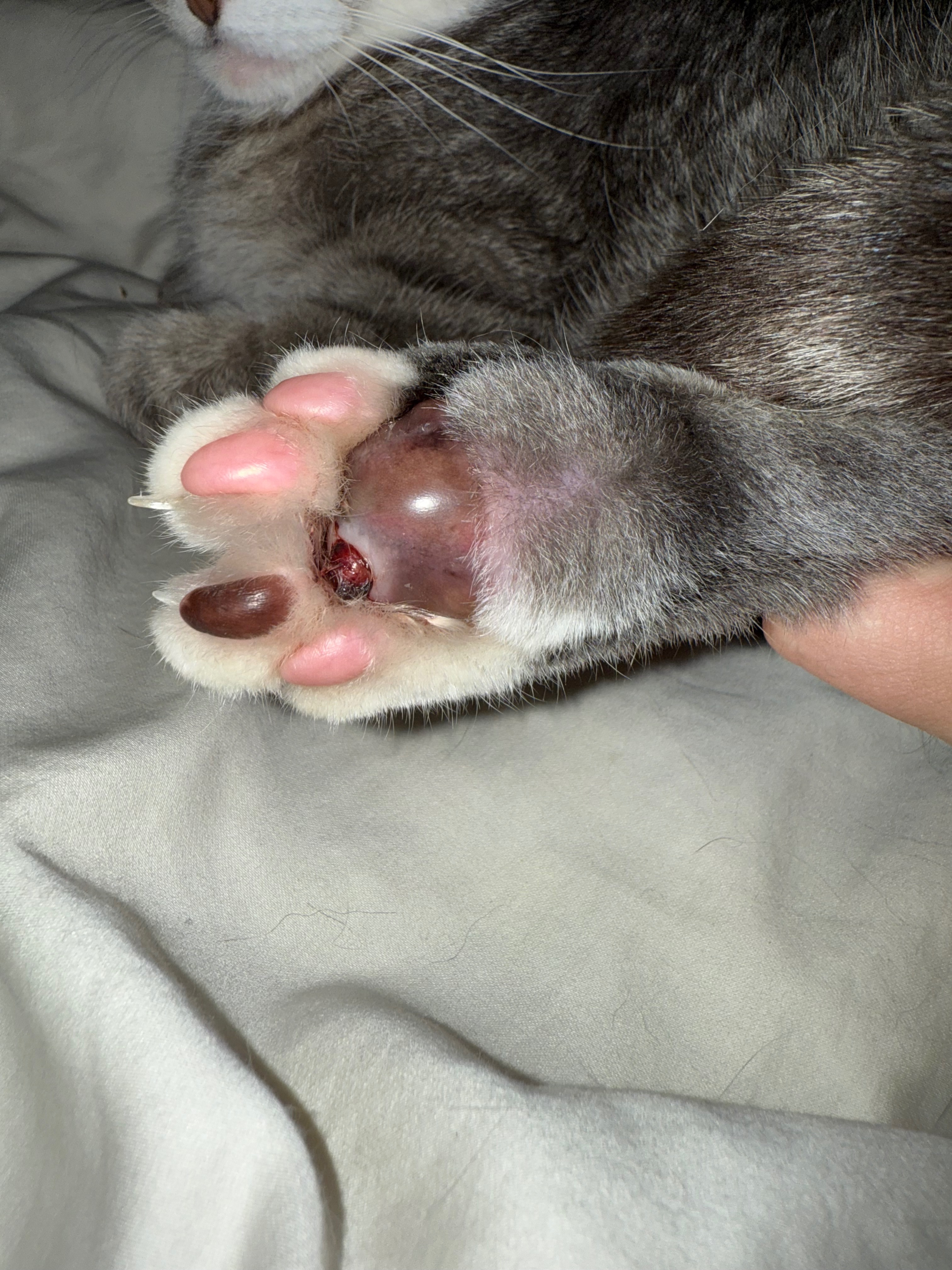 A couple of weeks ago, we noticed Critter was limping, and that’s when we also spotted his paw pad was about double the size it should be. We were able to quickly get him to the vet, where they were able to drain and flush it. He was then given antibiotics and pain meds. That happened on a Friday. By the following Wednesday, his whole paw pad was gone. Our vet was able to get him into surgery very quickly, where he sutured the pad closed. We were instructed that day to leave his bandage on until Sunday, 6/15. We noticed immediately it was oozing and smelled. I reached out to our vet over our concerns and are still waiting to hear back. At this point, we are unsure if Critter will get to keep his leg or not. Between draining the abscess and surgery, we have spent about $900 in vet bills already. We are nearly maxed out on our CareCredit card, unfortunately, and if he needs more work done, we will need help. As of now he is scheduled for surgery again Monday morning.
