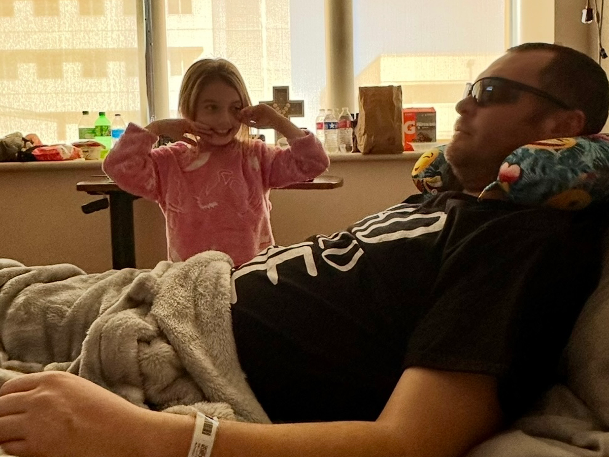 Daniel has stage four cancer. He started immunotherapy, but after the second treatment, the therapy began to attack his liver, brain, throat, and joints. He spent a week in the hospital and a week out doing high doses of IV steroids to counter it.