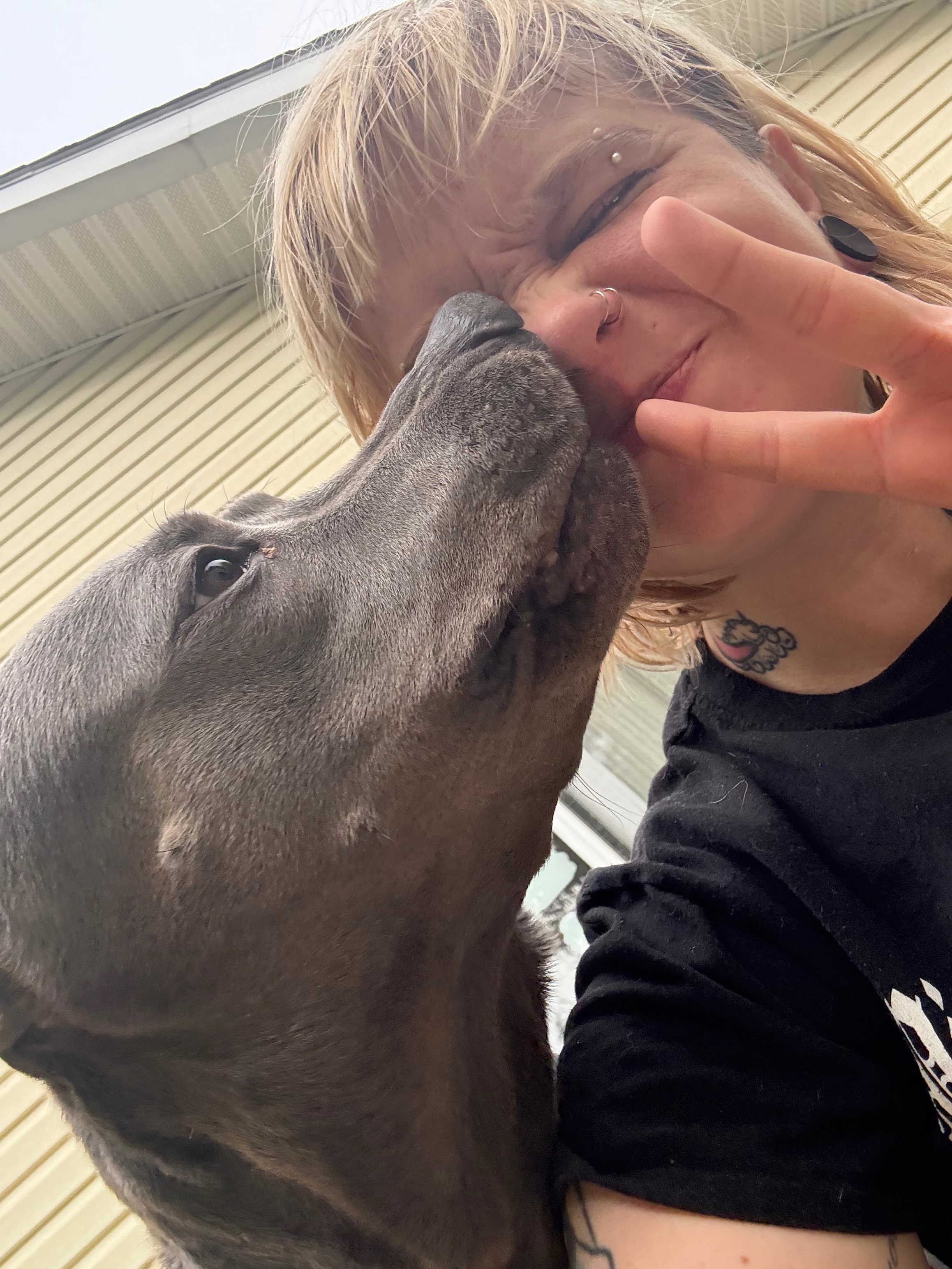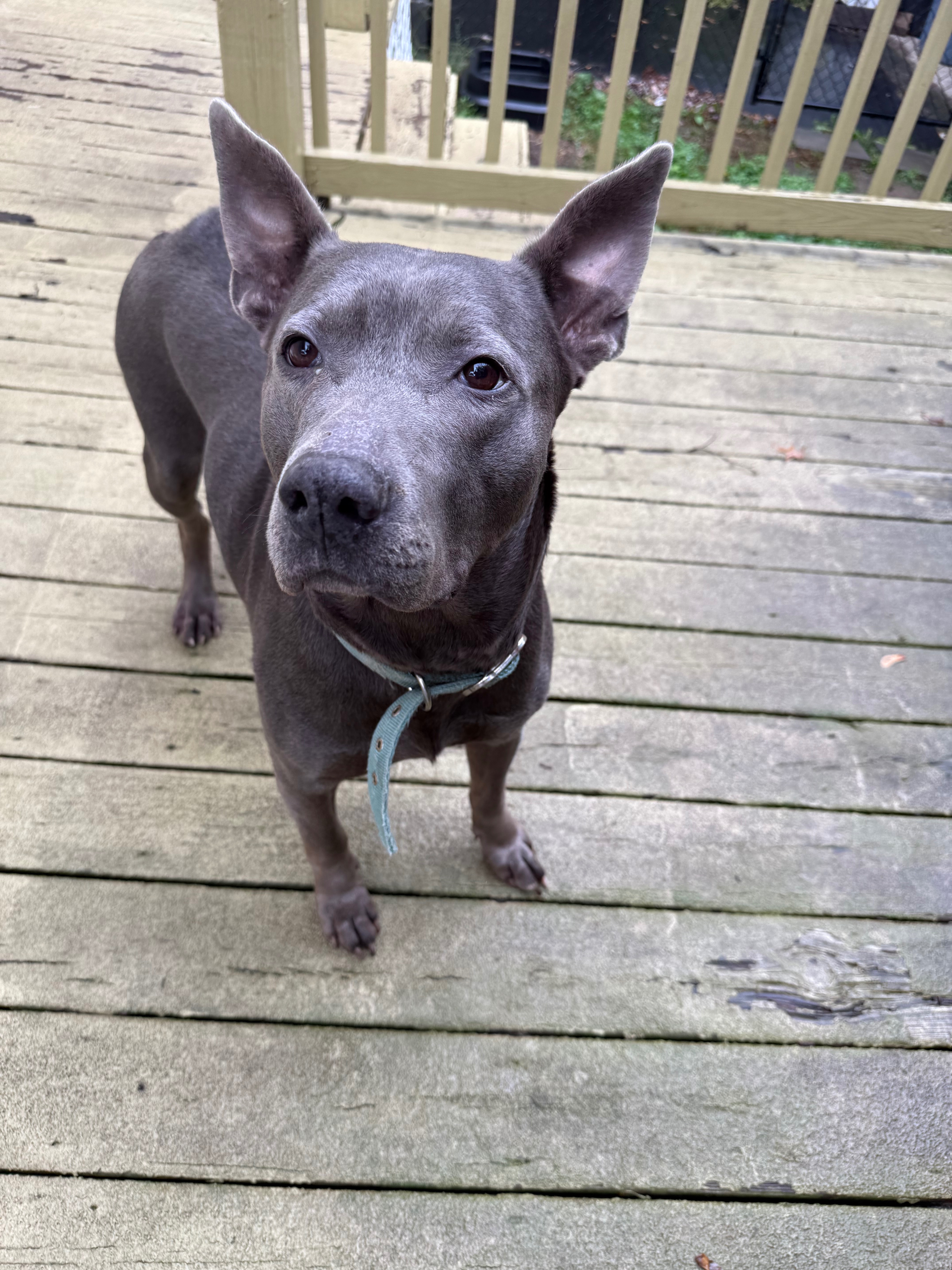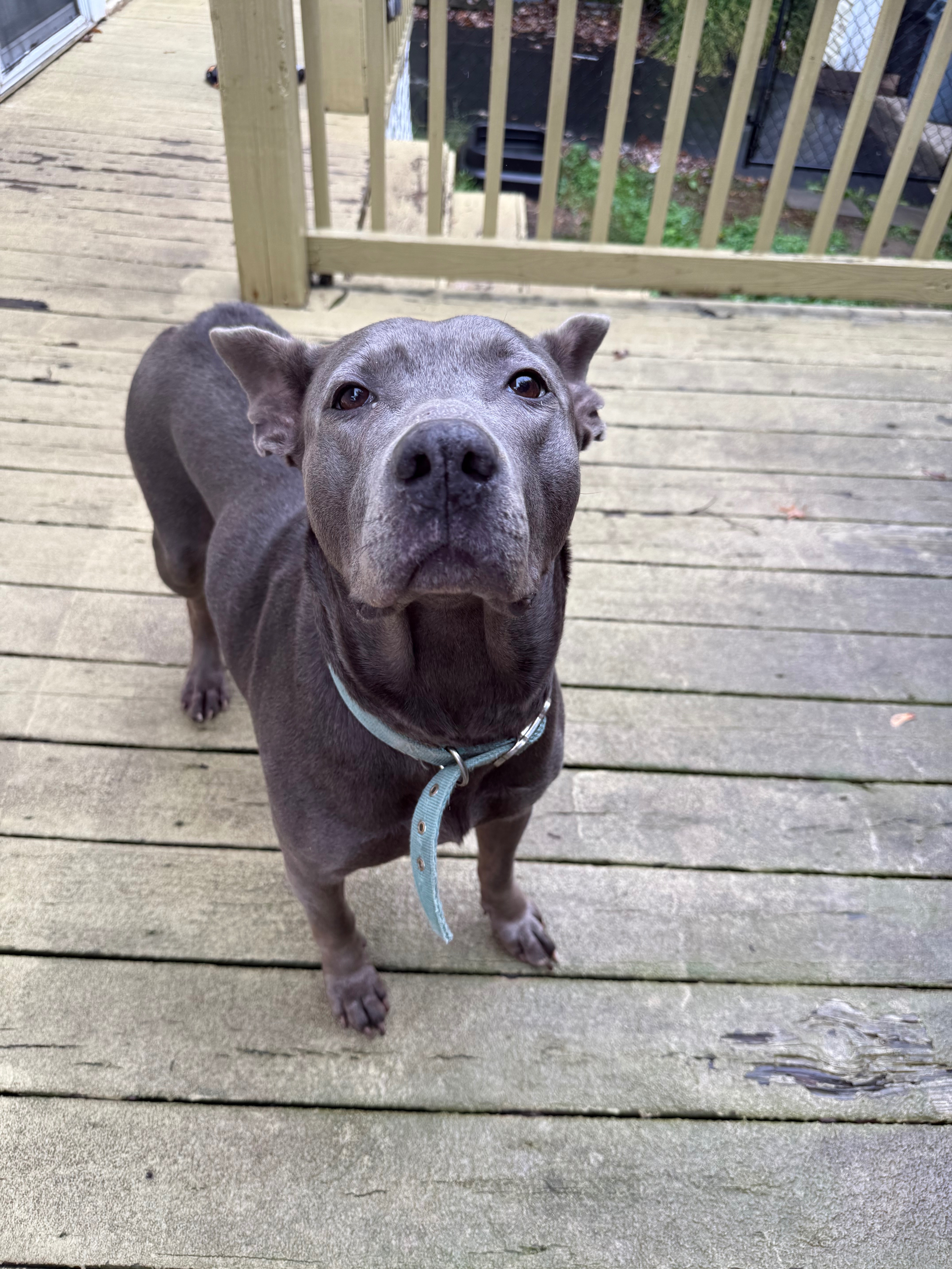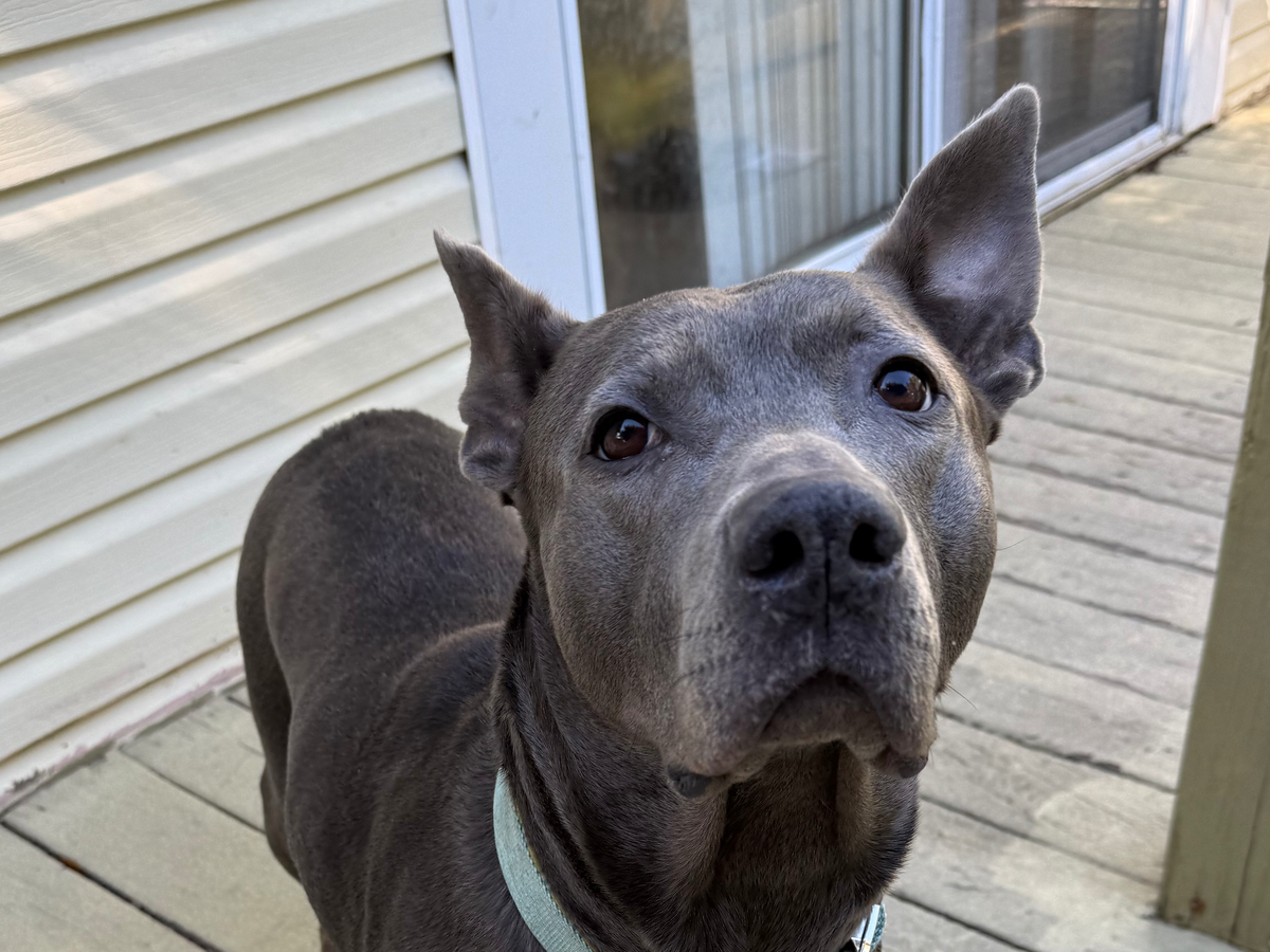 My name is Nicole Welka, and I am the dog control officer for the town of Sheridan, NY. I have been a dog control officer for about 3 years, and I have never had a dog give me any issue yet. Now introducing Darla, she is a female pit/mastiff/maybe shepherd mix, that’s what I’m guessing. She was found lying pretty much in a ditch in Sheridan. She was there, waiting for her owner, who most likely dumped her there. Darla is so loyal, she wouldn’t leave. A kind woman named Jess took the time to get close to Darla to earn her trust and was able to rescue her from the ditch. Then I came and picked her up to take her for the 5 days New York State requires as a holding period. Keep in mind, dogs can be euthanized after the 5 days. I’ve kept quite a few dogs past the 5 days to find rescue placement, but they’ve all been pretty easy dogs. Darla is a little bit of a different story. She is clearly traumatized from her owner’s betrayal. It took her a couple of days to warm up to me, but now she absolutely loves me and jumps up and down when I come to the kennel. But, I have no holding center, and she is in a large kennel in my garage. I have 5 dogs, and she definitely doesn’t seem to be socialized with other dogs, so her time out of the kennel is limited. I have had her since October 5th. Today is October 30th. She has gotten extremely depressed and is not happy about being in the kennel anymore. Anybody who has tried to come see her, she growls and barks and lunges profusely toward them. I cannot adopt her out myself because of these behavioral issues. It’s hard to place Darla with a rescue or foster because of her stipulations, most likely no cats, other dogs, or kids. A wonderful organization called Against All Oddz Animal Alliance has sponsored her; they take in dogs that need a little bit of extra patience, time, and understanding. But still, no fosters are available because of her stipulations. There is a board and train program that AAO uses, which I believe Darla would benefit from. It could quite actually save her life. I cannot watch her suffer in this kennel any longer. I also have 5 dogs of my own, and other strays will need my help too. Plus, a kennel in the garage is no place for a dog. Darla deserves the treatment any house pet gets, a nice bed, cuddles every night, and to feel safe for once in her life. If you can, please save Darla’s life. I almost feel as if it’s unkind for me to keep her living like this. I do not want to euthanize a dog as I never have, and Darla deserves a chance.