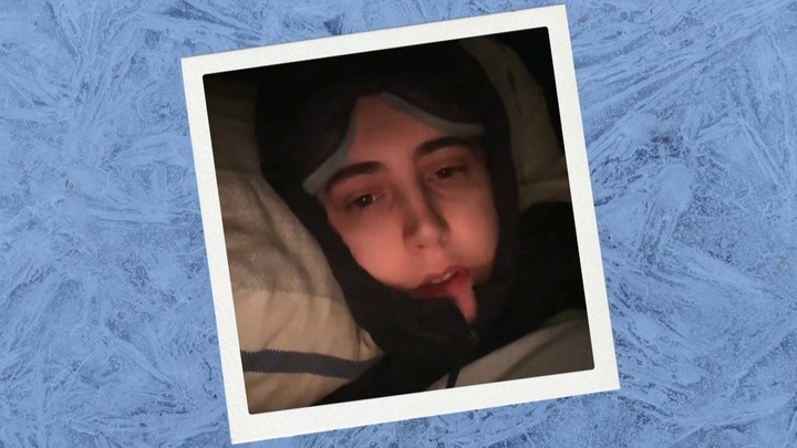 She is currently waking up shaking from cold — early signs of hypothermia — with severe pain, sleep deprivation, headaches, throat pain from breathing frozen air, and crashes that can last weeks.