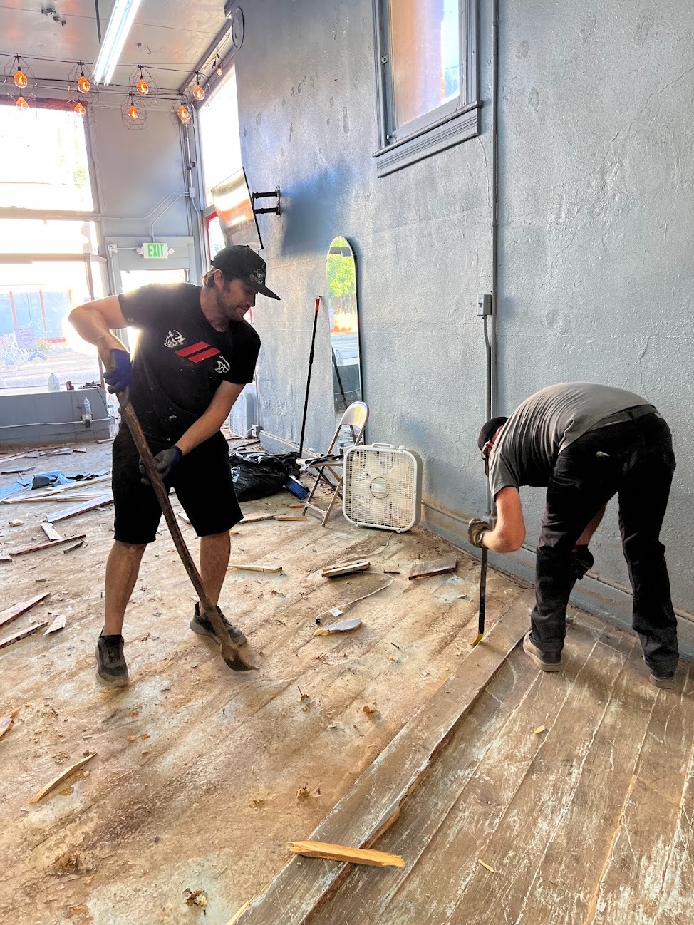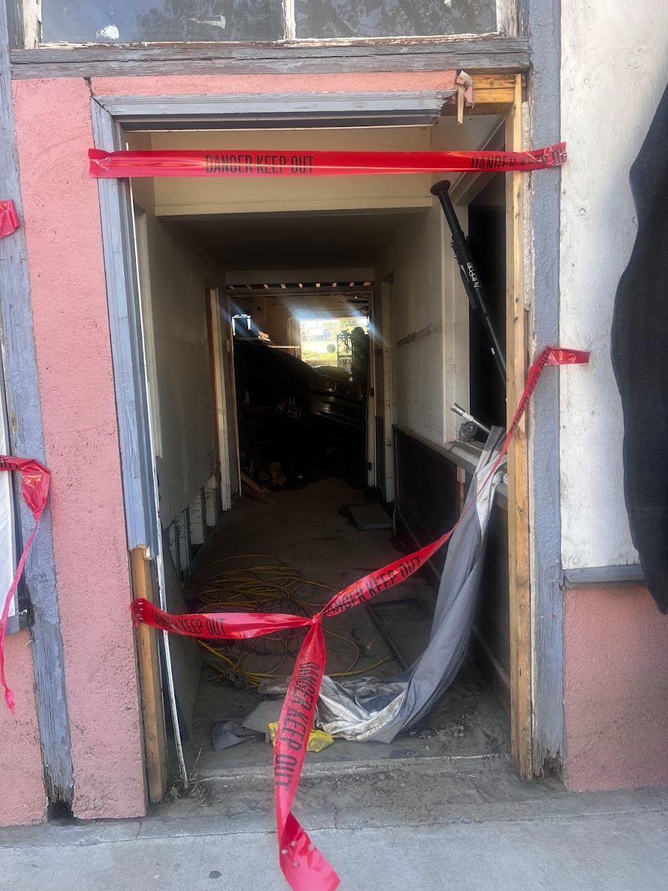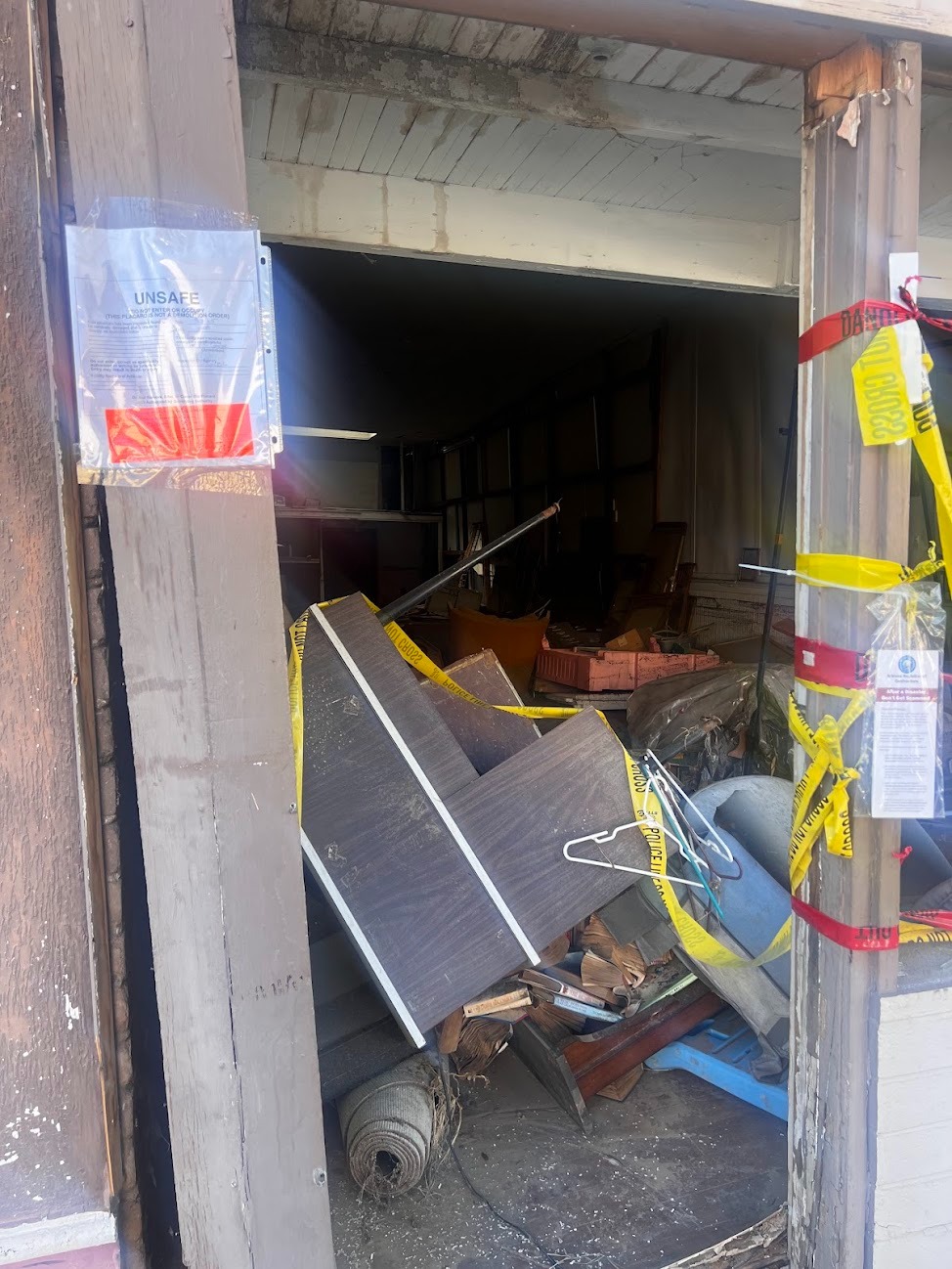 Davy Berrey owns several of these buildings. Volunteers (us included) are handling the manpower—cleanup, hauling, and labor—daily. What we need are materials to make spaces safe and sound again.