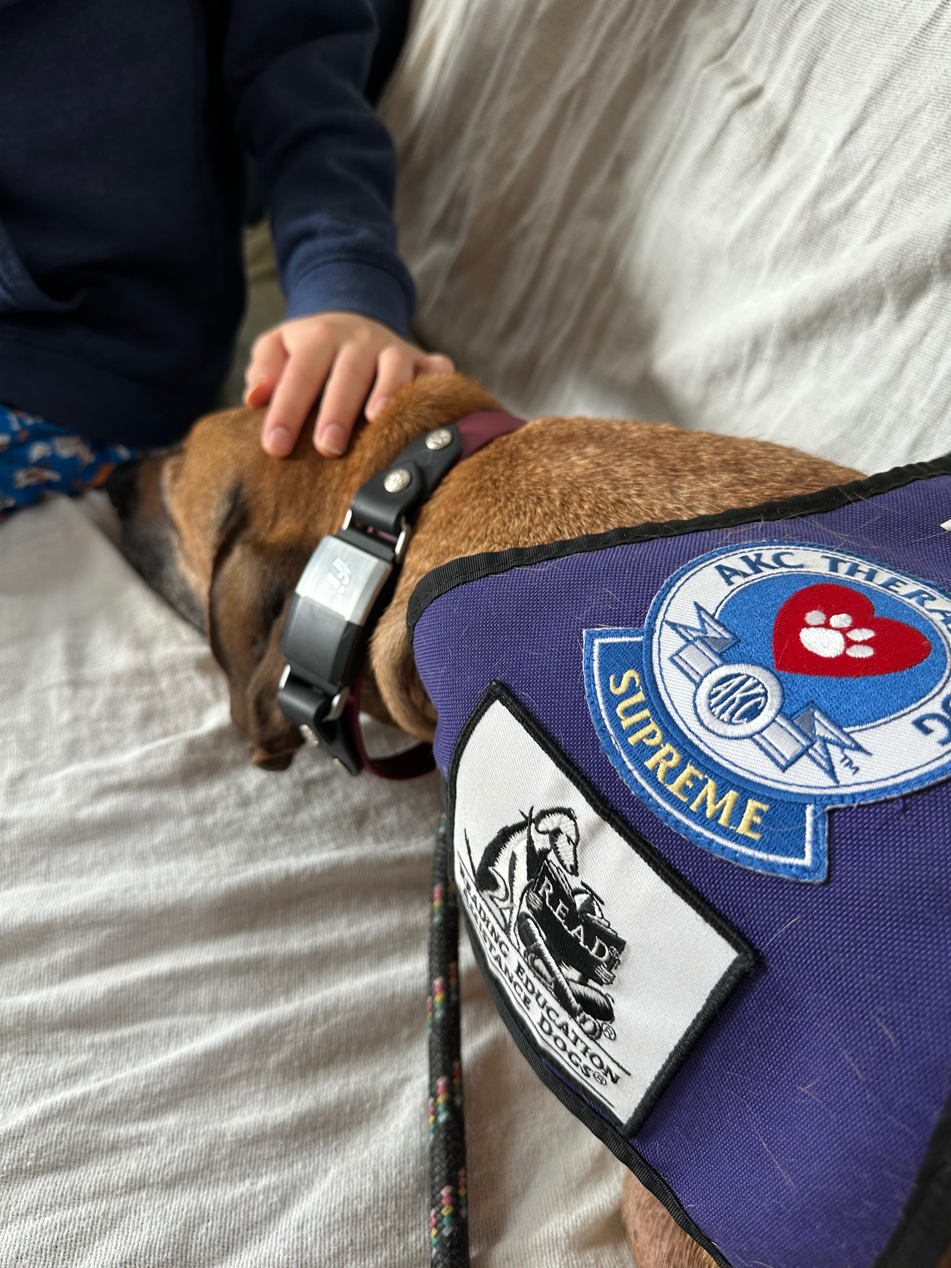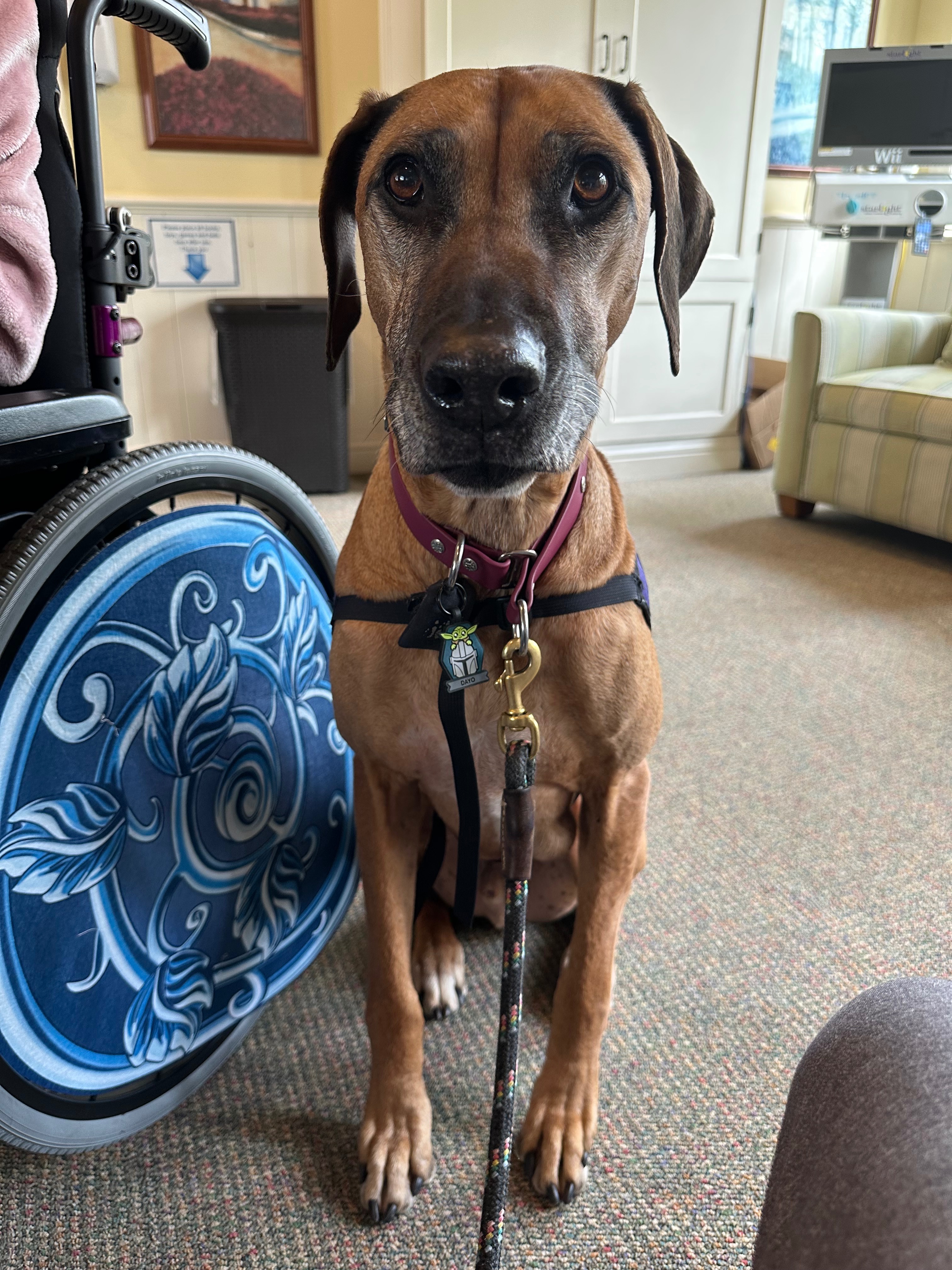 For eight years, Dayo has been a devoted pet-assisted therapy dog. After lovingly supporting his cheetah companion and sister, Pancake, until her passing at nearly three years old, Dayo transitioned into serving others. He has brought comfort and healing to children and adults undergoing cancer treatments at hospitals and medical facilities throughout the Bay Area. His calm presence, gentle spirit, and unwavering kindness have touched countless lives.