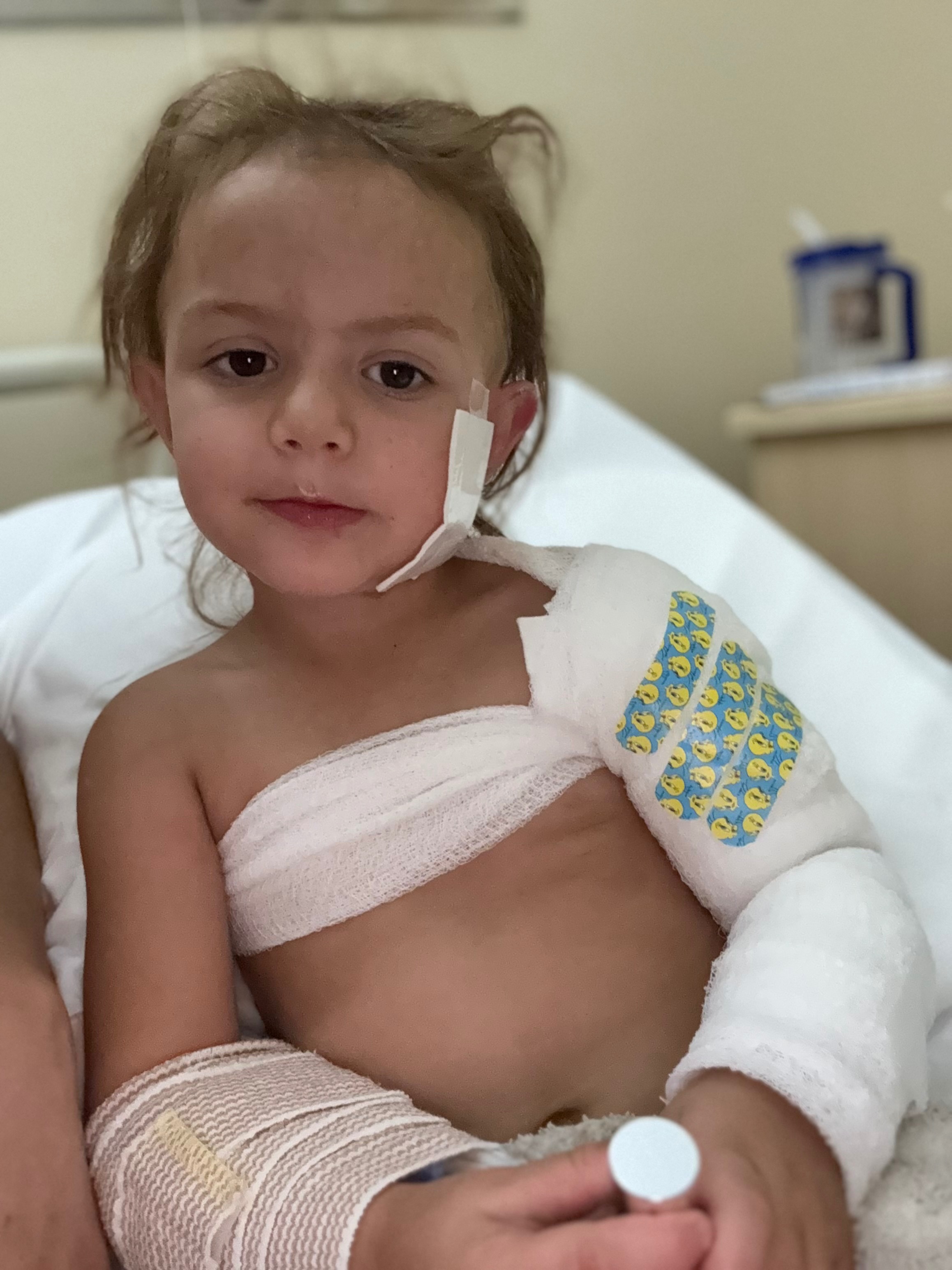 Sunday night, August 10th, 3-year-old Dean Maddalena became a victim of a horrible accident. She is now in Shriners Hospital for Children being treated for second and third-degree burns on her face and arm. The Maddalena family is doing everything they can to make sure their baby girl does not experience any lasting effects. Dean spent her first three nights in PDH where she was stabilized, then transferred. She is now being seen by specialists who do not yet know the extent of her injuries or how long she will be staying. What they do know is that she will need to have extensive treatments and surgeries to make sure the burns do not scar her for life. This will take a minimum of a few weeks, if not more.